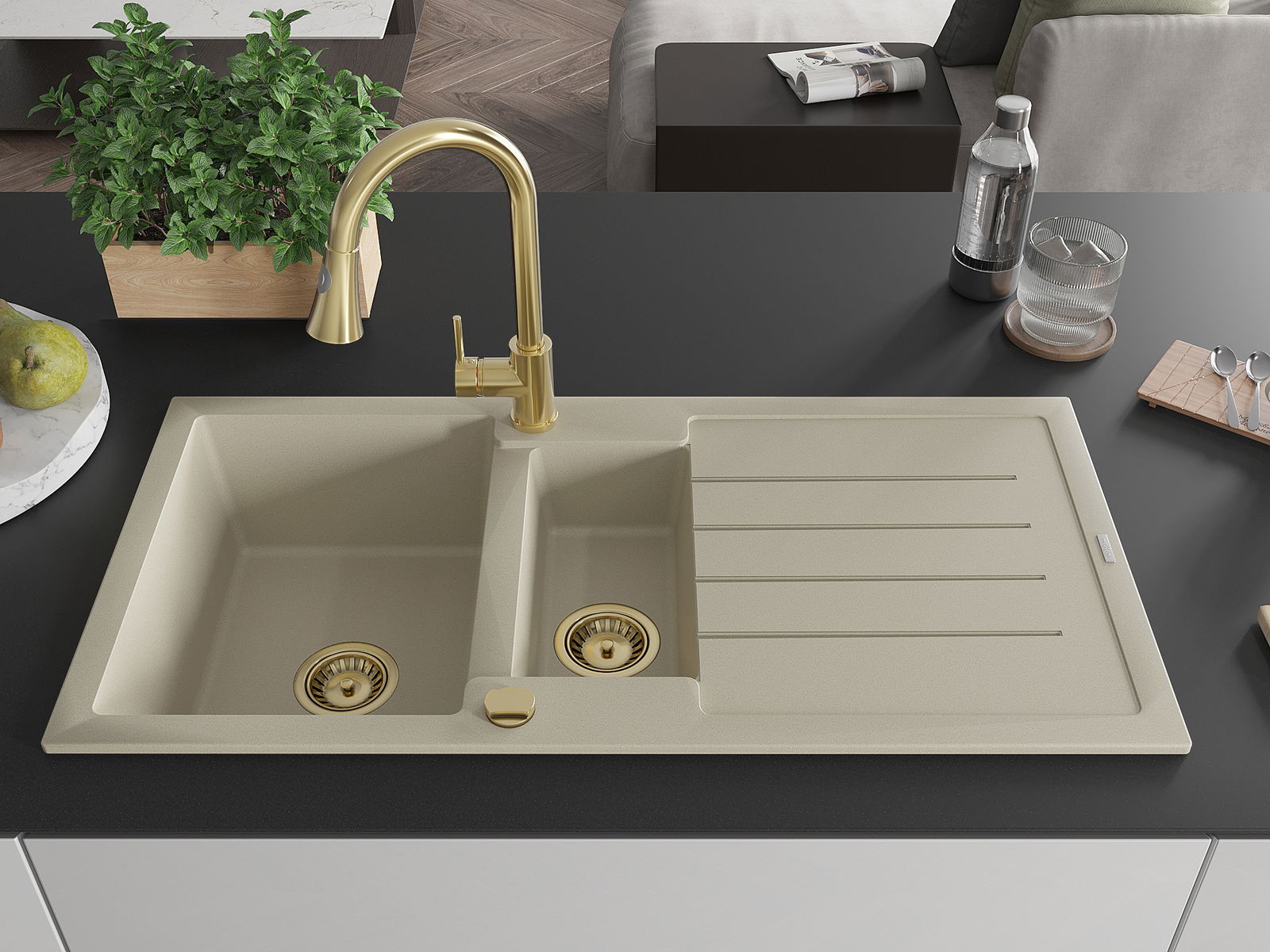 Kriauklės paviršius yra atsparūs dėmėms ir spalvos pasikeitimui, dėl kurio lengva valyti ir ilgą laiką išlaikyti savo spalvą. Estetinis ir praktiškai papildantis kiekvieną virtuvę.