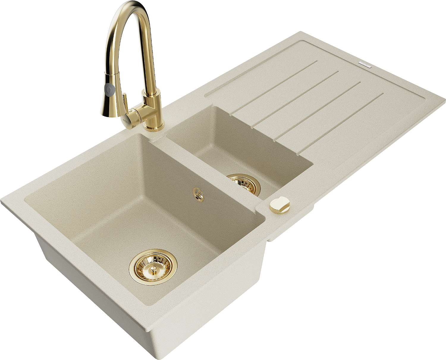 Mexen Andres granitinis 1,5 skylių kriauklė su lašėjimo vieta ir virtuvine maišytuve Elia, smėlio spalvos - 6515-69-670101-50