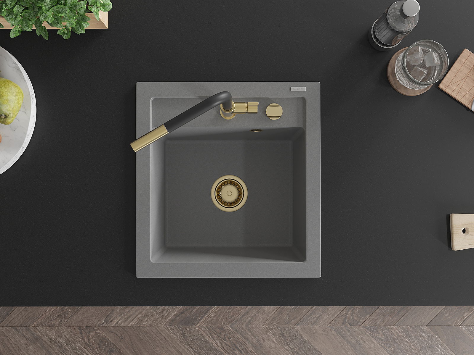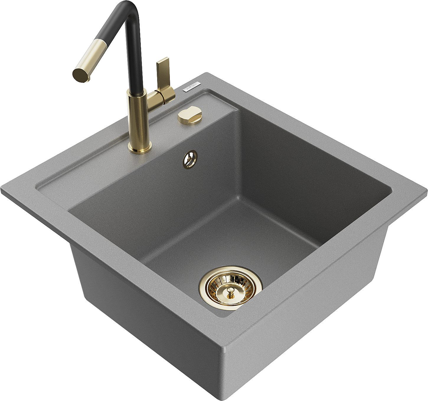 Mexen Vito vienos kameros granito plautuvė su virtuviniu maišytuvu Flora, pilka - 6503-71-670401-57-G