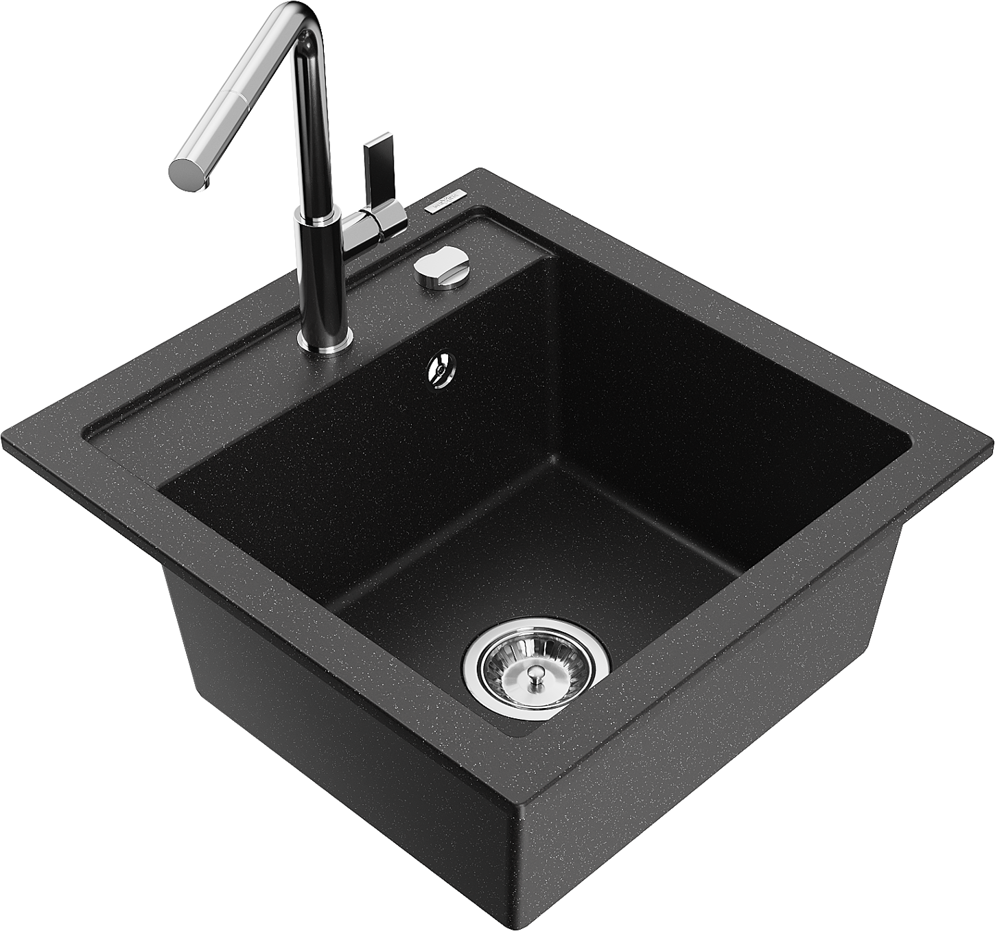Mexen Vito granito plautuvė vienos kameros su Flora virtuviniu maišytuvu, juoda/sidabrinė metalik - 6503-73-670401-00