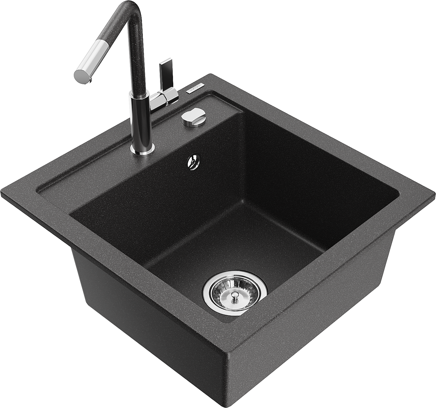 Mexen Vito virtuvinė granito plautuvė su vienu dubeniu ir maišytuvu Flora, juodas su taškeliais - 6503-76-670401-08