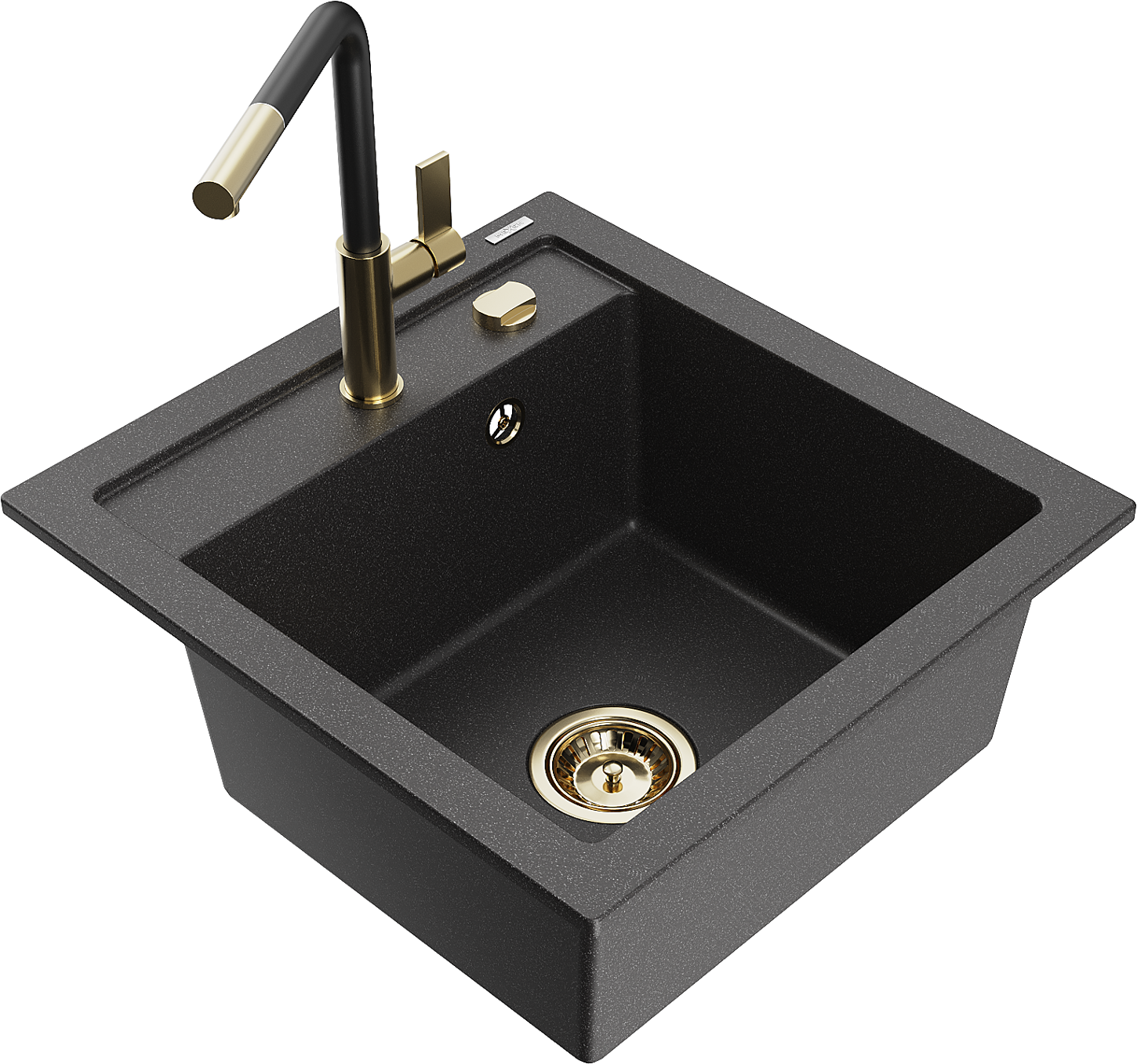 Mexen Vito granitinė vienos kameros virtuvės kriauklė su Flora virtuvės maišytuvu, juodas spragėsuotas - 6503-76-670401-57-G