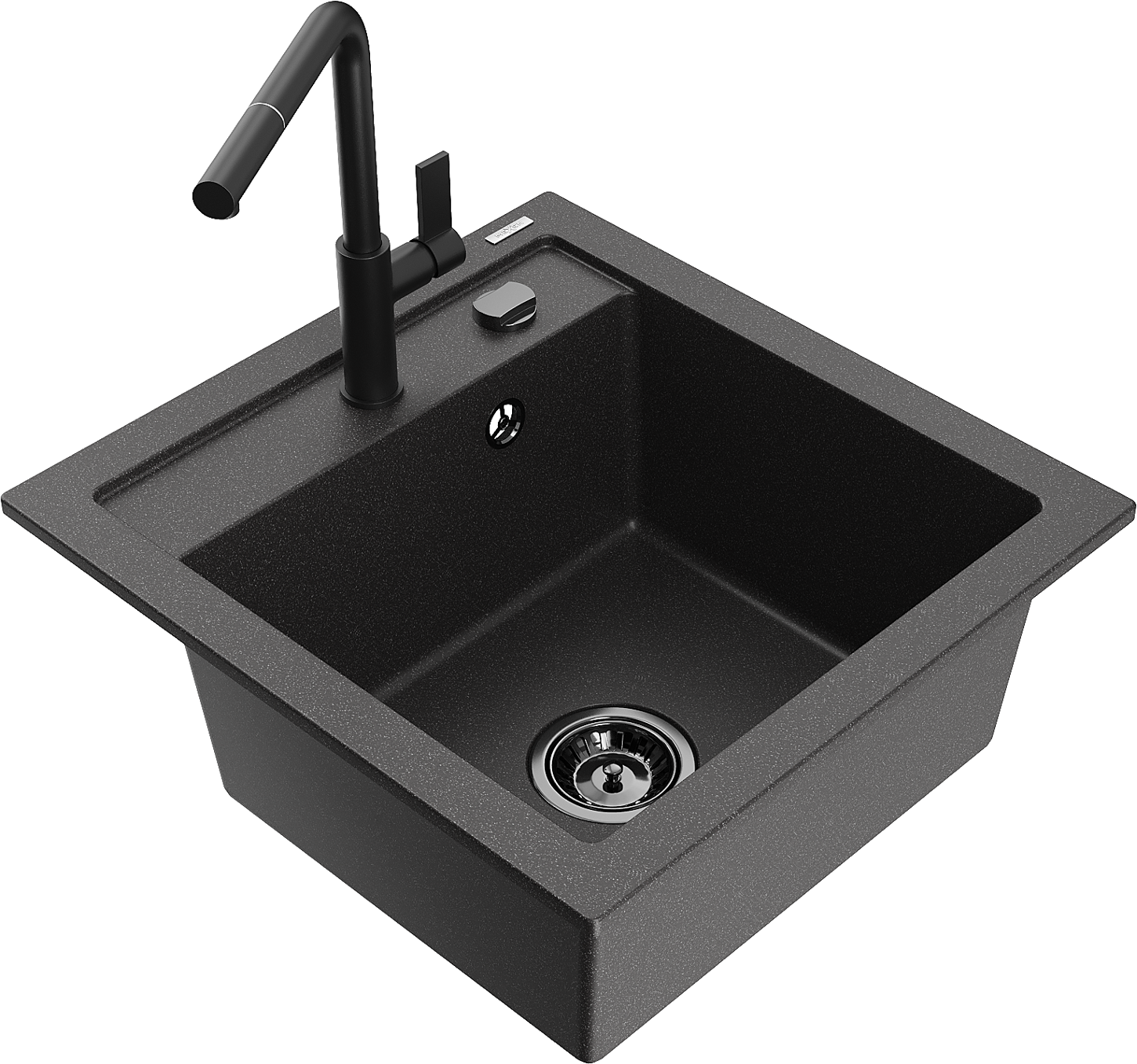 Mexen Vito vienos kameros granitinė kriauklė su Flora virtuviniu maišytuvu, juodas dėmėtas - 6503-76-670401-70-B