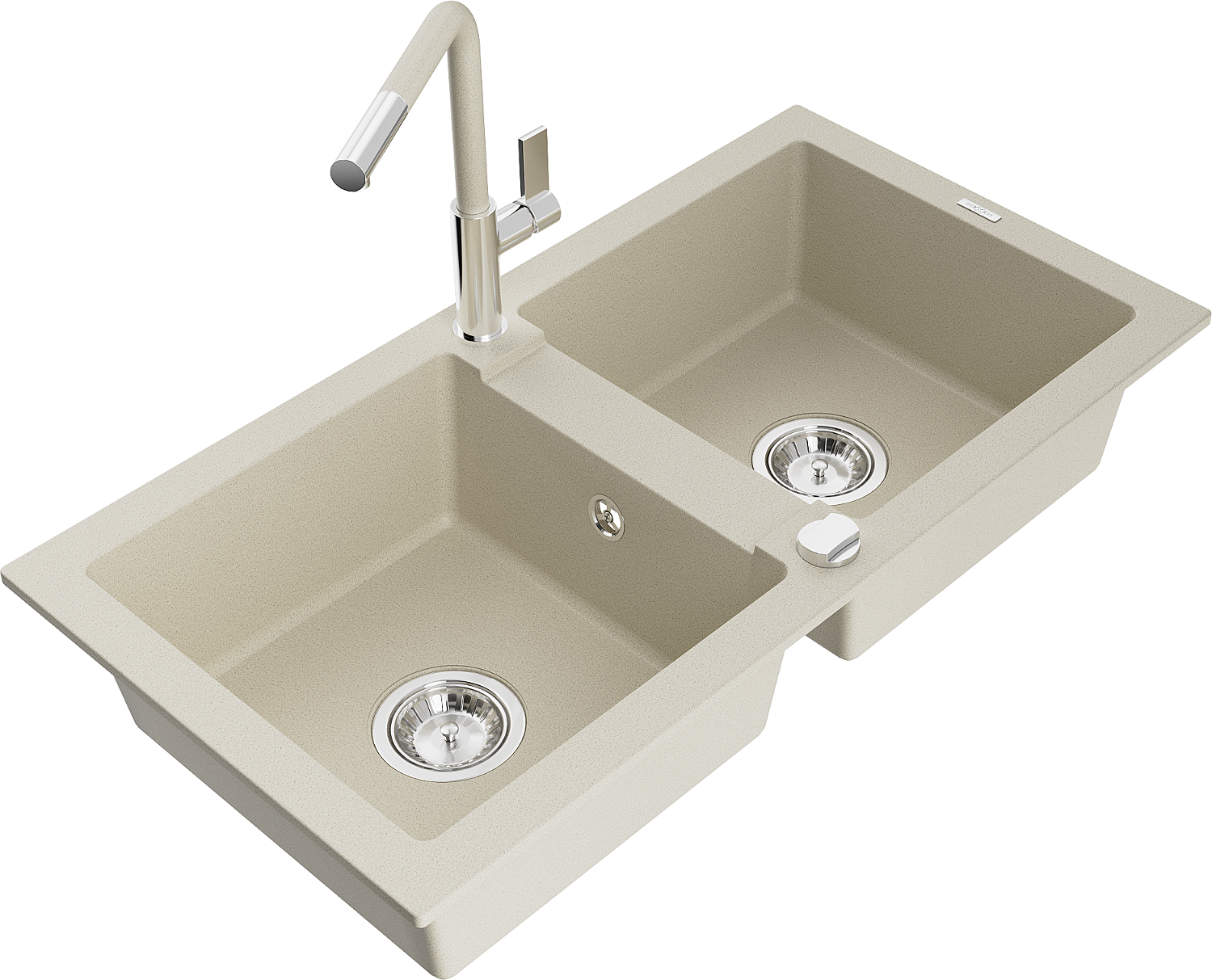 Mexen Mario granito kriauklė 2 kamerų su Flora virtuviniu maišytuvu, smėlio spalvos - 6504-69-670401-09