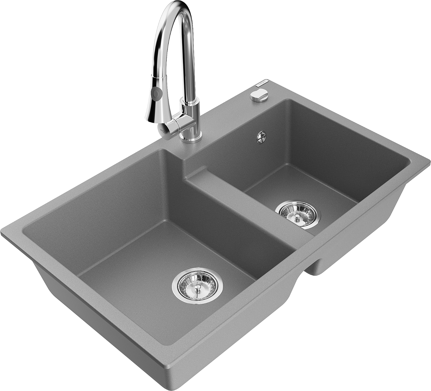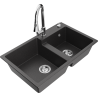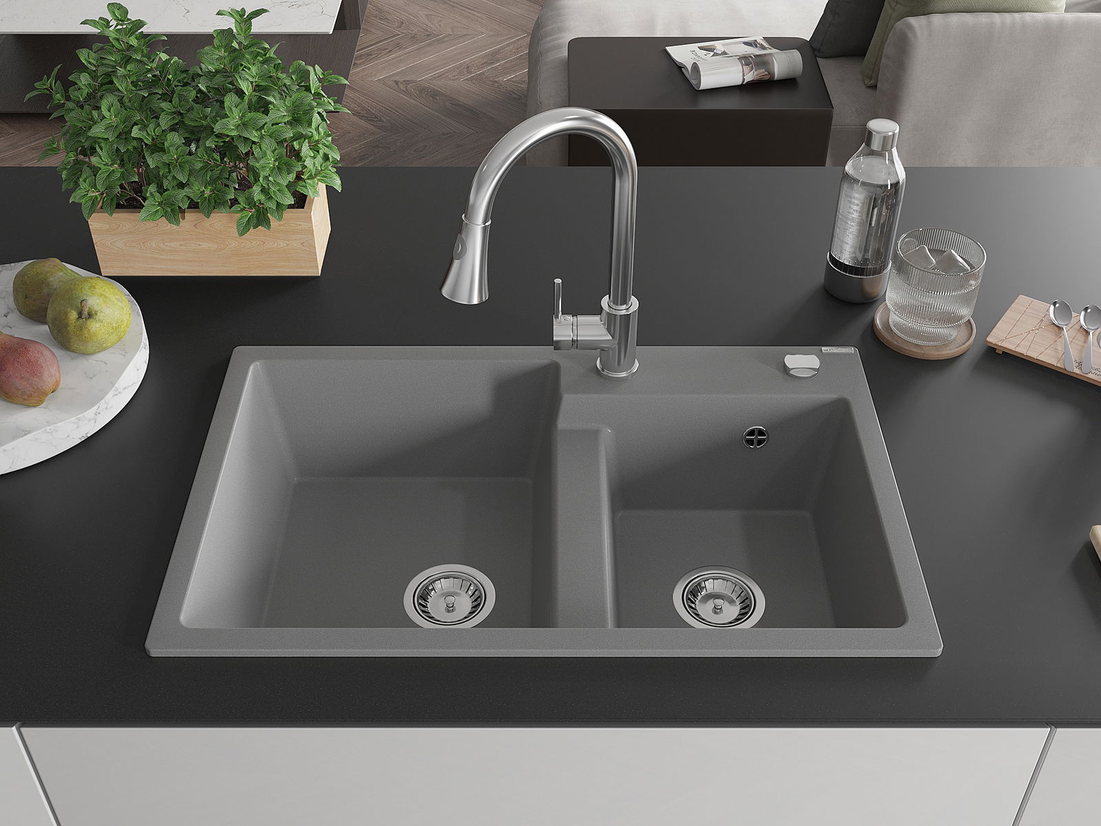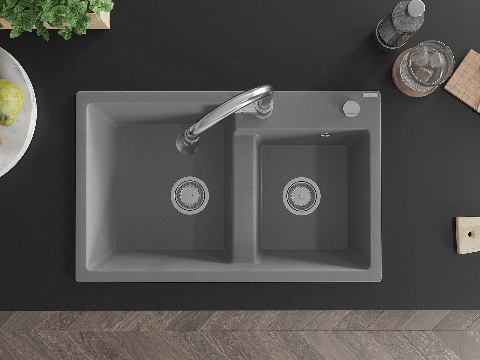 Mexen Tomas dviejų skyrių granitinė kriauklė su virtuviniu maišytuvu Elia, pilka - 6516-71-670101-00