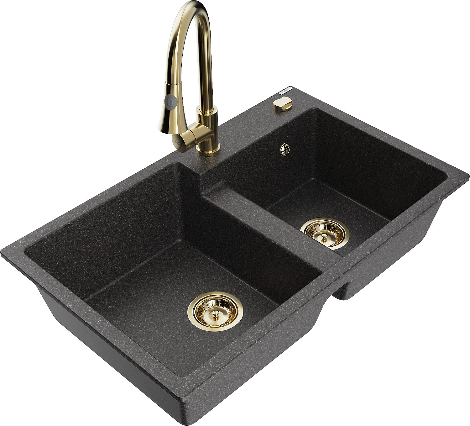 Mexen Tomas granitinė 2 skyrių plautuvė su Elia virtuviniu maišytuvu, juoda dėmėta - 6516-76-670101-50