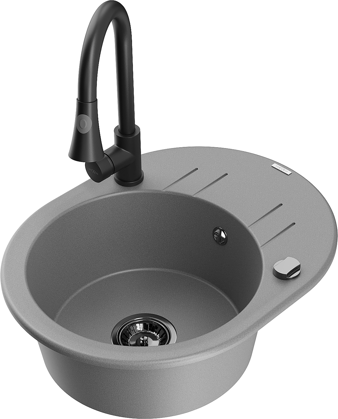 Mexen Kevin granito plautuvė 1-skylių su nutekamuoju ir virtuviniu maišytuvu Elia, pilka - 6517-71-670101-70-B