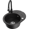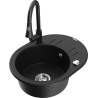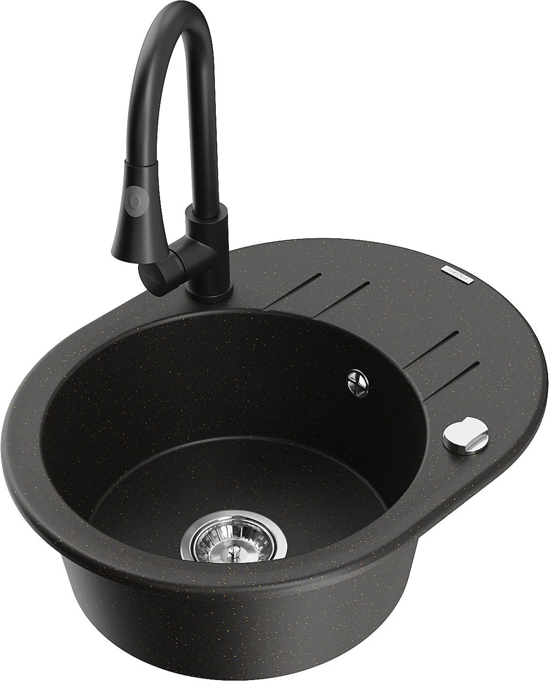 Mexen Kevin granito kriauklė su viena kamera ir nutekėjimo skyriumi bei virtuviniu maišytuvu Elia, juoda/auksinio metalo
