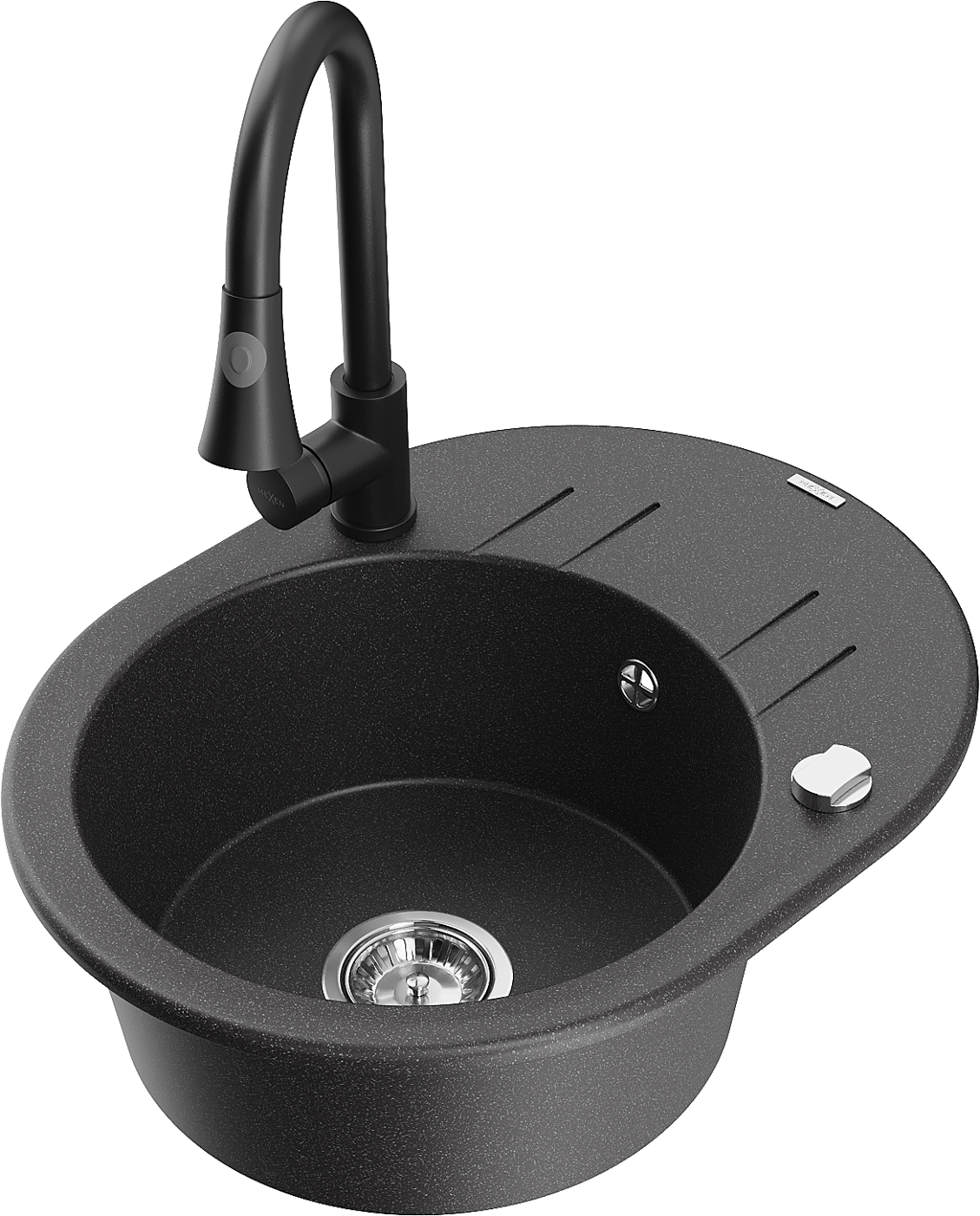 Mexen Kevin granitinis 1 kamerų plautuvas su nusausintuvu ir virtuviniu maišytuvu Elia, juodas dėmėtas - 6517-76-670101-70