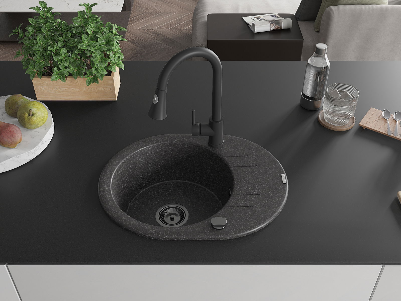 Kriauklės paviršius yra atsparūs dėmėms ir spalvos pasikeitimui, dėl kurio lengva valyti ir ilgą laiką išlaikyti savo spalvą. Estetinis ir praktiškai papildantis kiekvieną virtuvę.