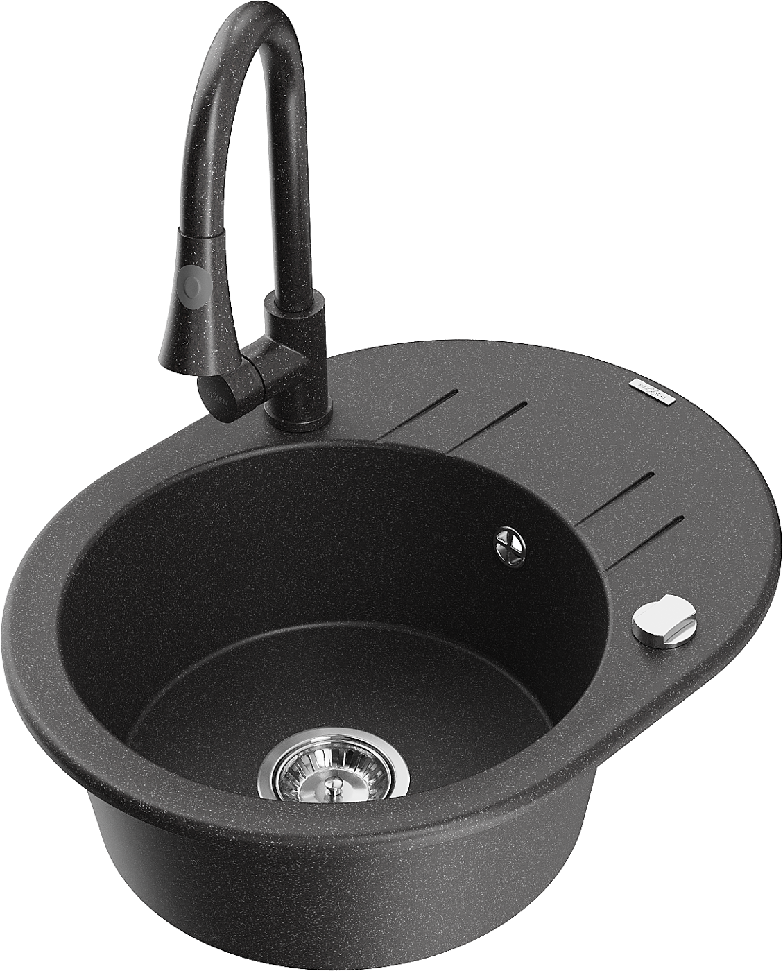 Mexen Kevin granitinė vienos plautuvės kriauklė su nusausintuvu ir virtuviniu maišytuvu Elia, juodas dėmėtas - 6517-76-670101-7?
