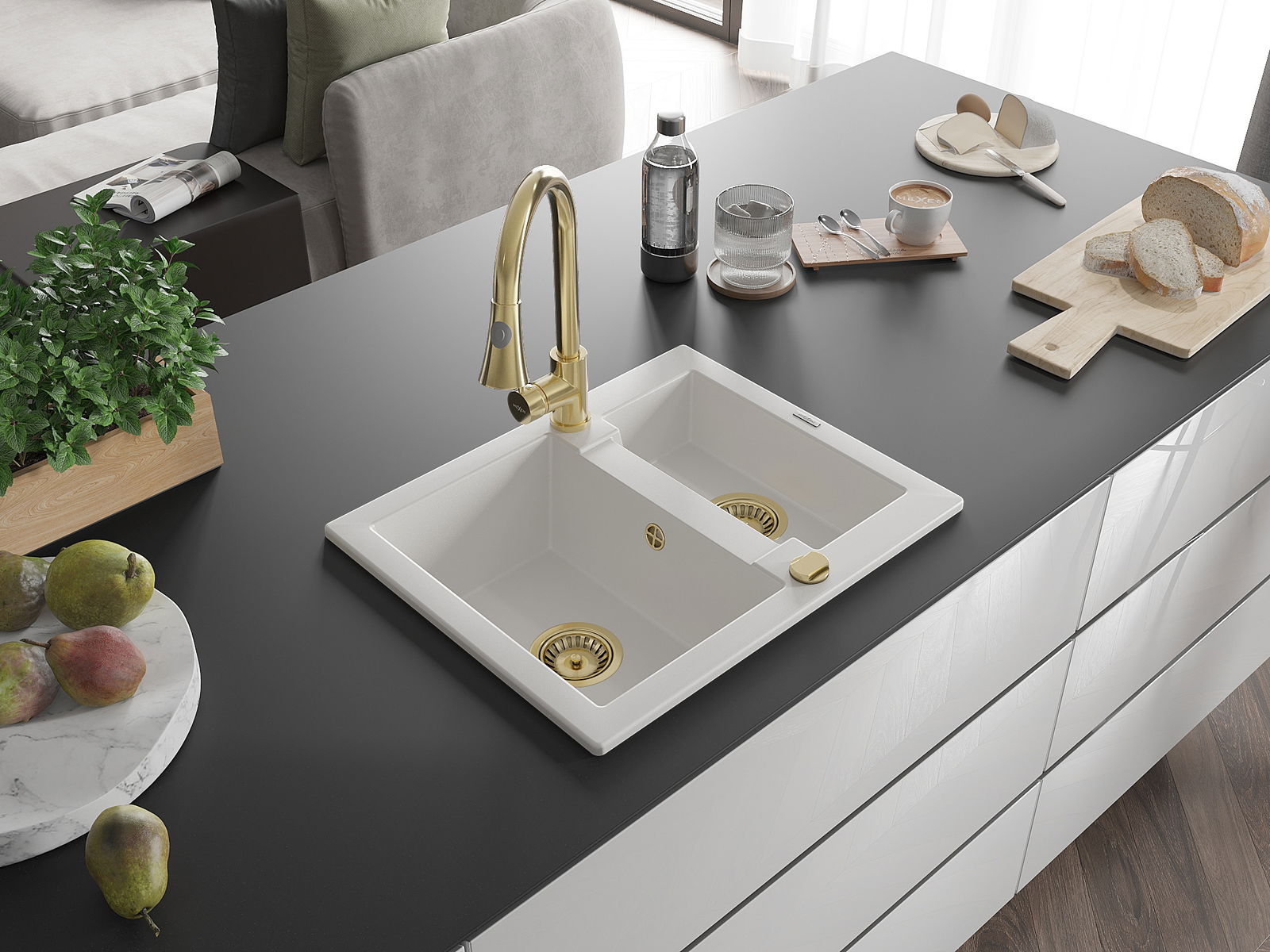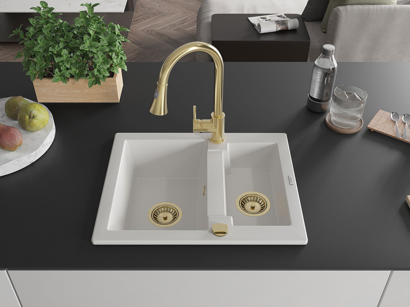 Kriauklės paviršius yra atsparūs dėmėms ir spalvos pasikeitimui, dėl kurio lengva valyti ir ilgą laiką išlaikyti savo spalvą. Estetinis ir praktiškai papildantis kiekvieną virtuvę.