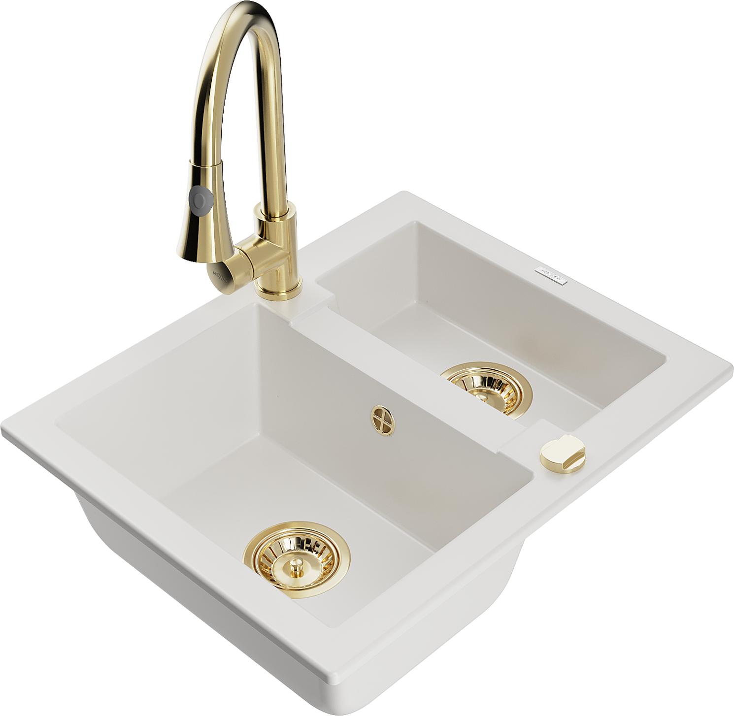 Mexen Carlos granitinė virtuvės kriauklė 1,5 skylių su Elia maišytuvu, balta - 6518-20-670101-50