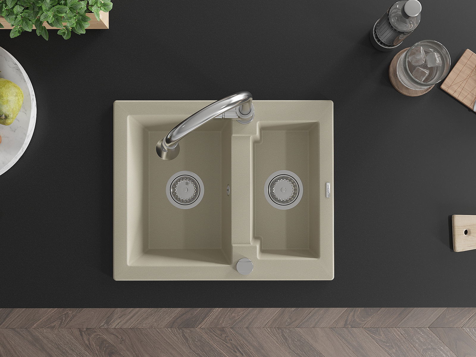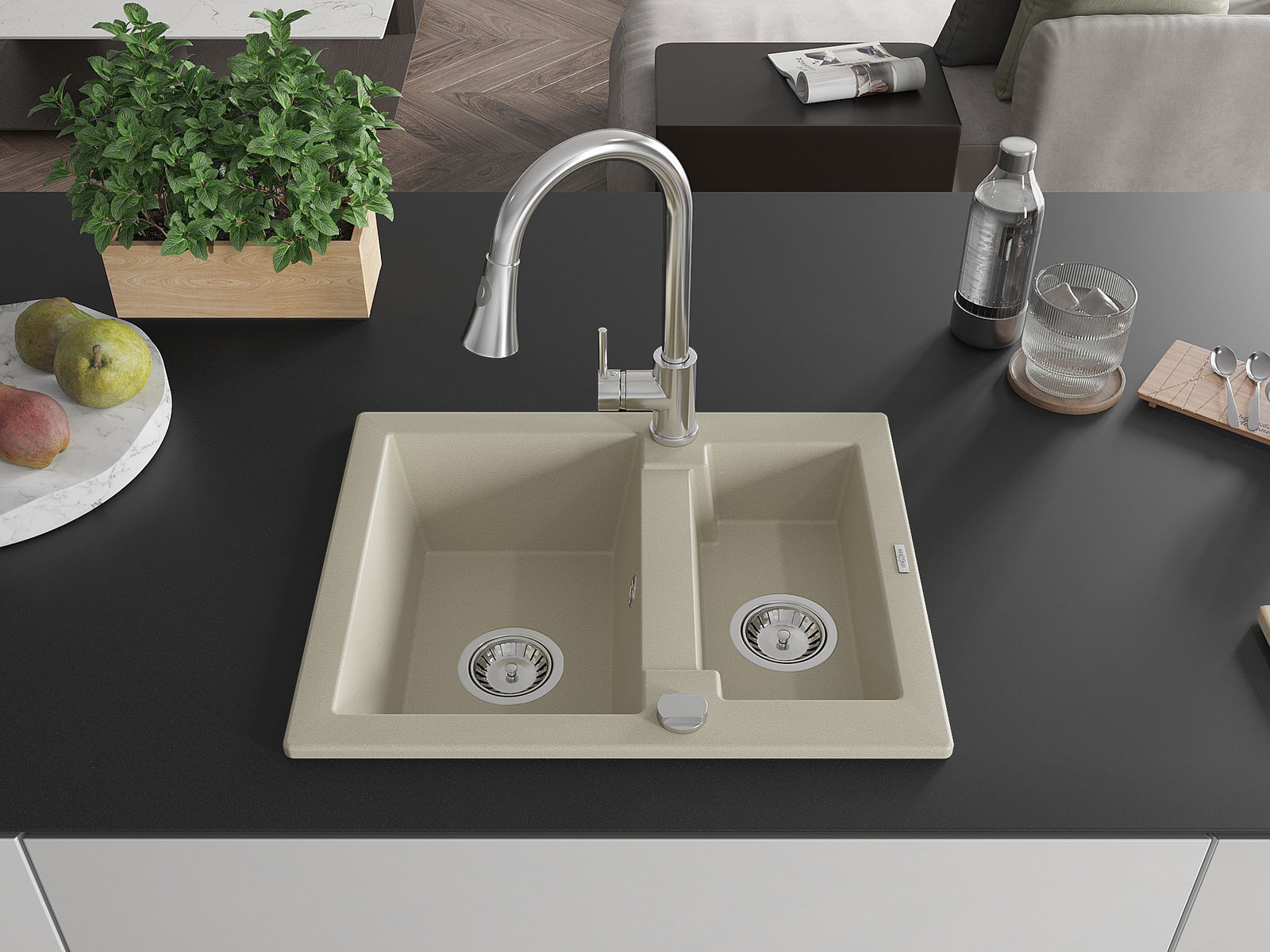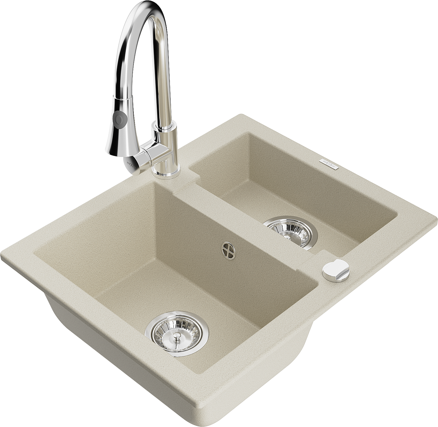 Mexen Carlos granitinis plautuvės 1,5 dubens su virtuviniu maišytuvu Elia, smėlio spalvos - 6518-69-670101-00