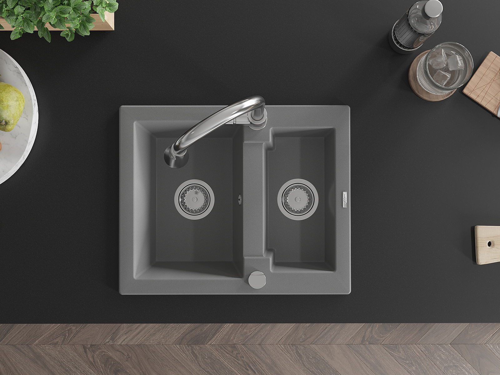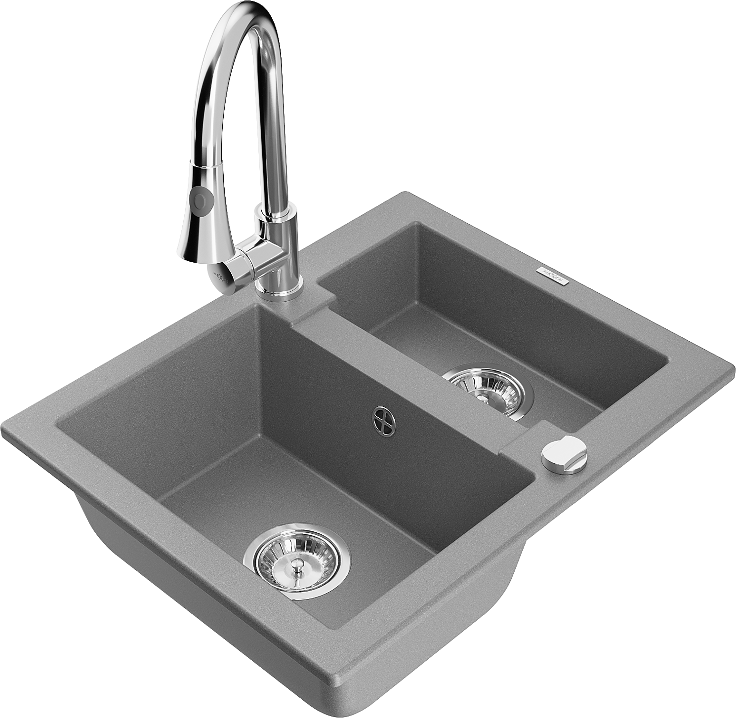 Mexen Carlos granito plautuvė 1,5 kamerų su virtuvės maišytuvu Elia, pilka - 6518-71-670101-00