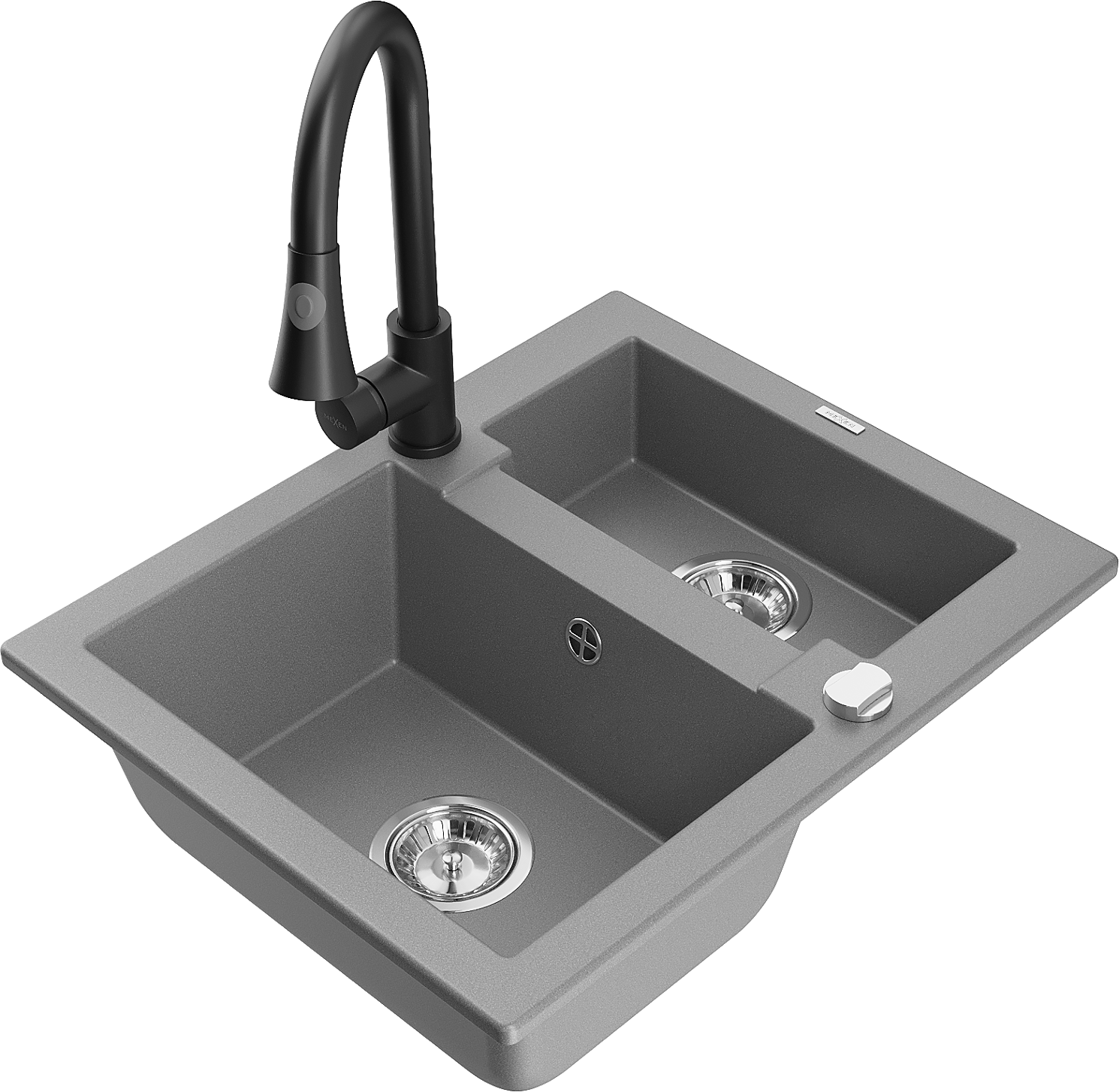 Mexen Carlos granitinė 1,5 kamerų plautuvė su virtuviniu maišytuvu Elia, pilka - 6518-71-670101-70