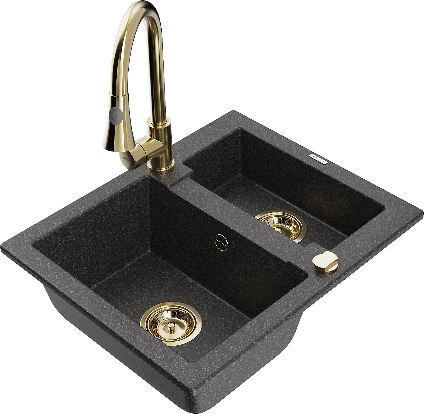 Mexen Carlos granito plautuvė 1,5 skyriumi su virtuvės maišytuvu Elia, juoda dėmėta - 6518-76-670101-50