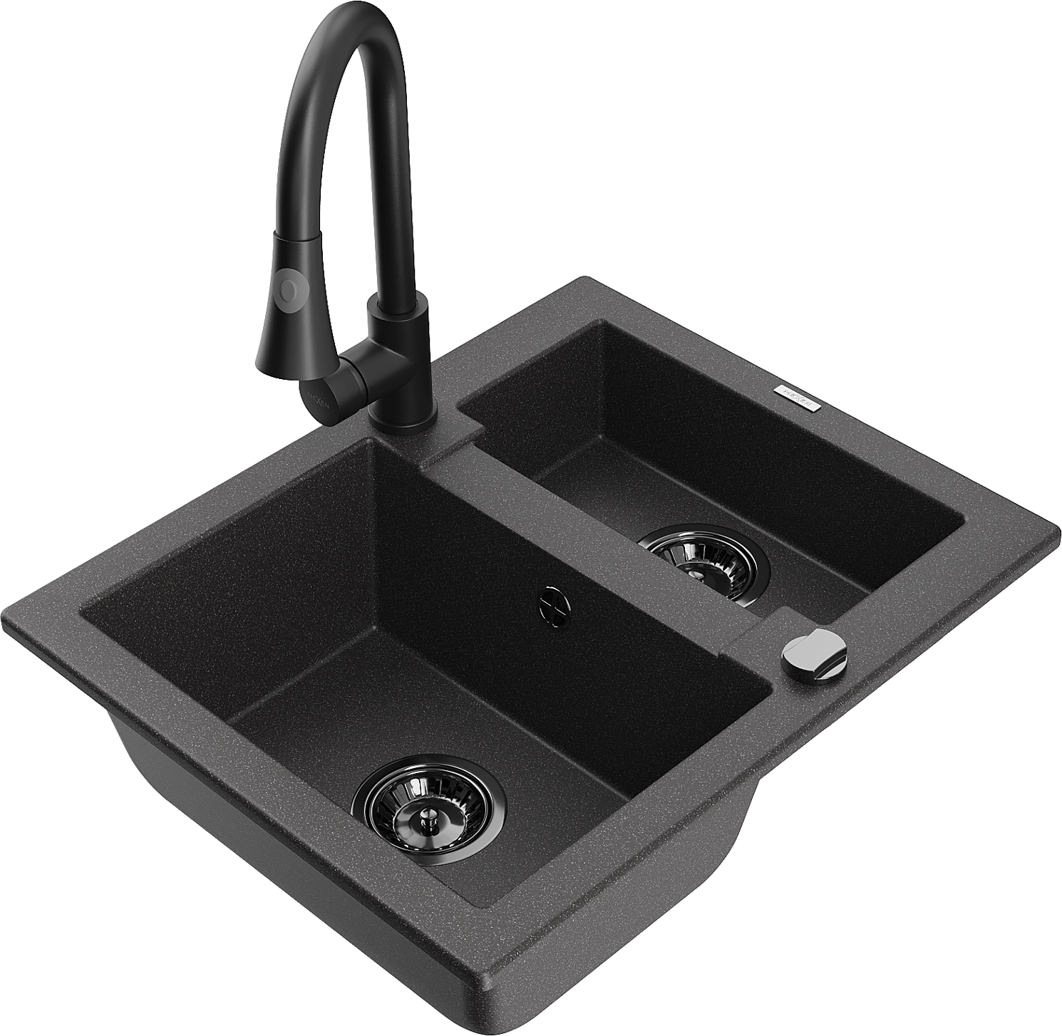 Mexen Carlos granitinė 1,5 sekcijų virtuvinė kriauklė su Elia maišytuvu, juoda taškuota - 6518-76-670101-70-B