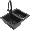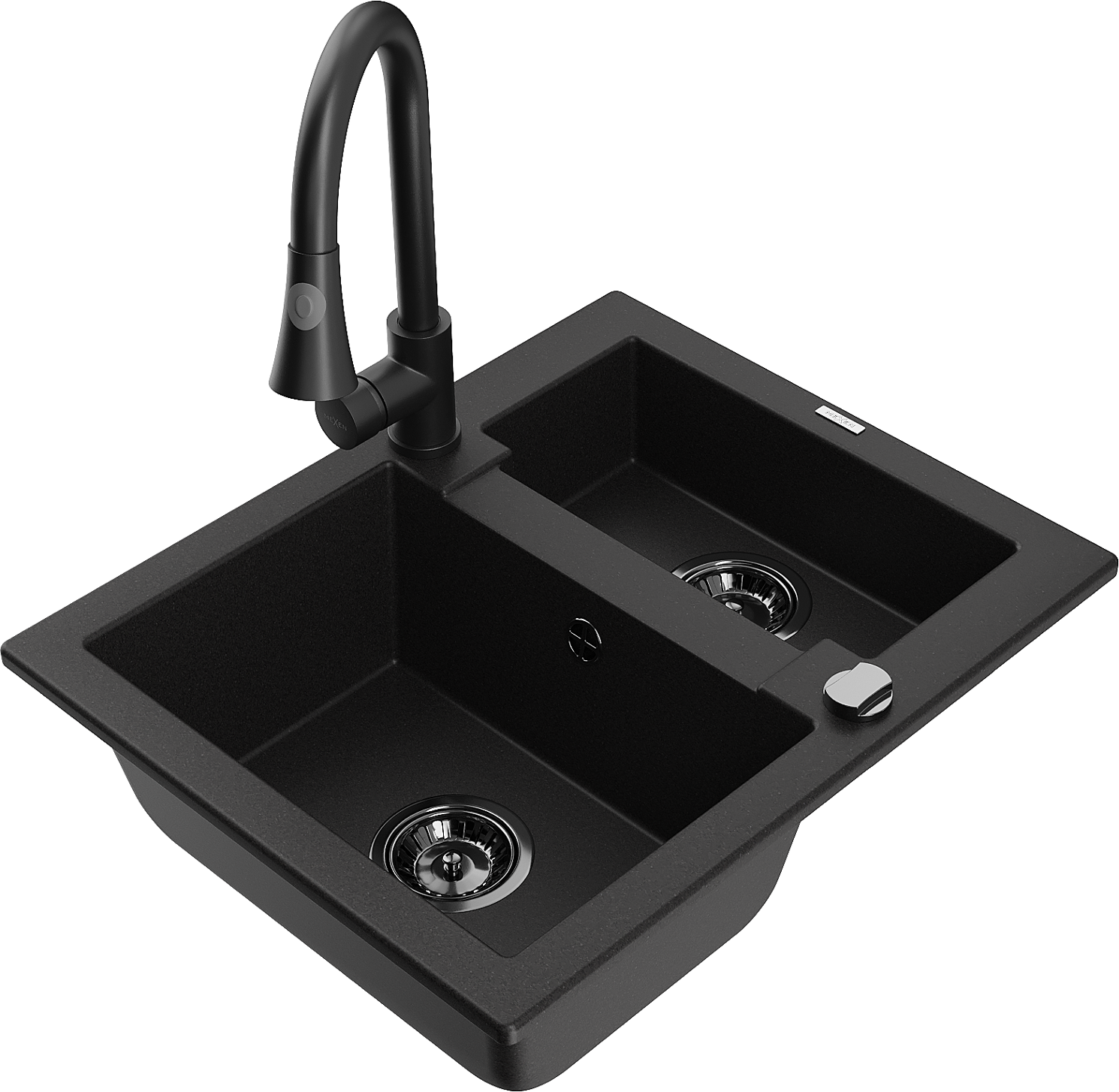 Mexen Carlos granitinė virtuvės kriauklė 1,5 kamerų su Elia virtuvės maišytuvu, juoda - 6518-77-670101-70-B