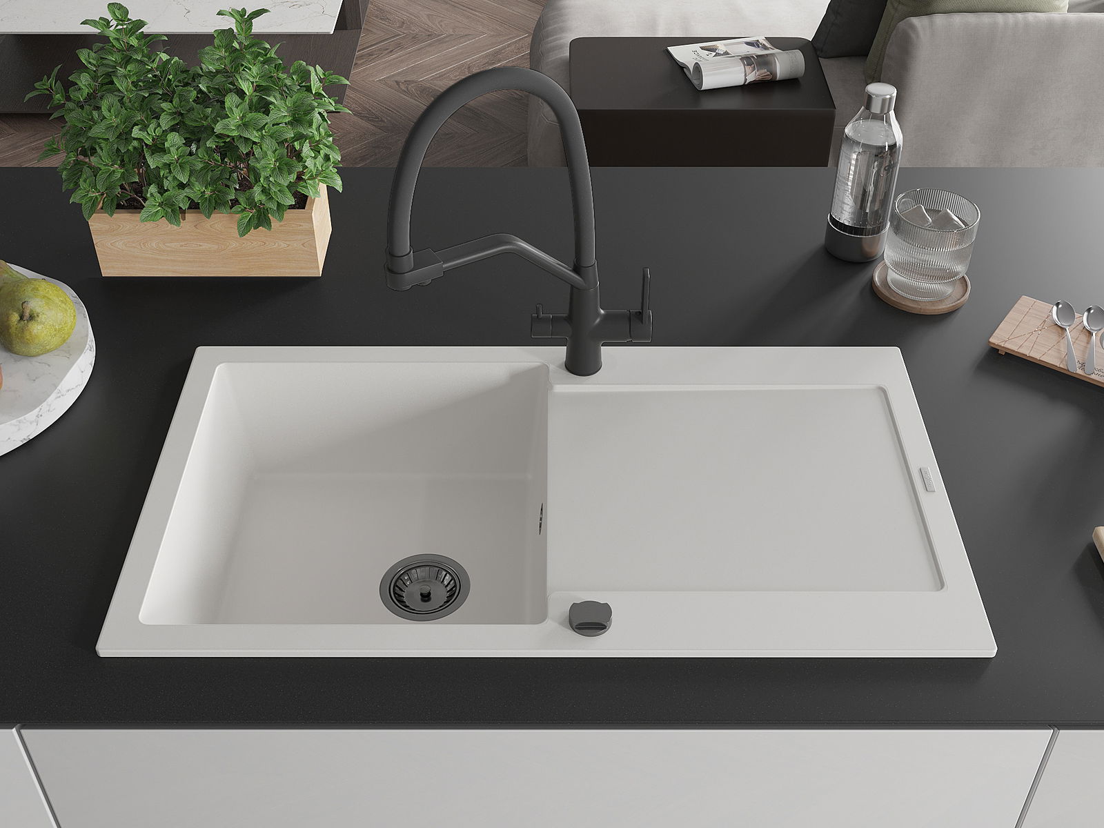 Kriauklės paviršius yra atsparūs dėmėms ir spalvos pasikeitimui, dėl kurio lengva valyti ir ilgą laiką išlaikyti savo spalvą. Estetinis ir praktiškai papildantis kiekvieną virtuvę.