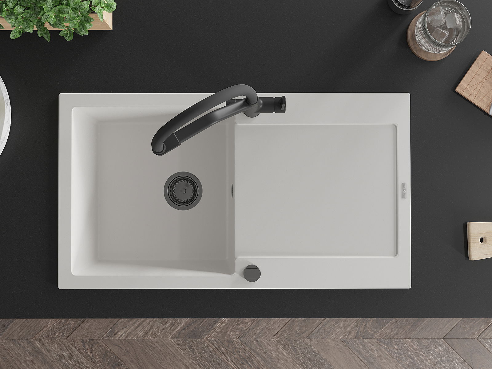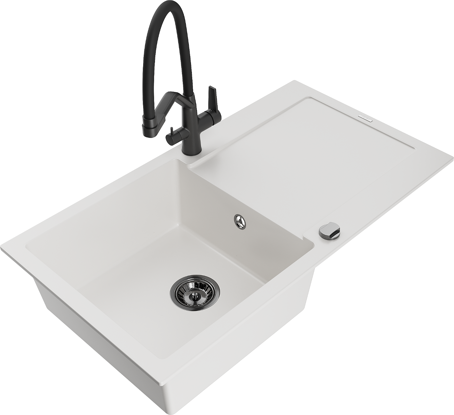 Mexen Leo granitinis viena dubens kriauklė su nutekėjimu ir maišytuvu Duo, balta - 6501-20-671701-70-B
