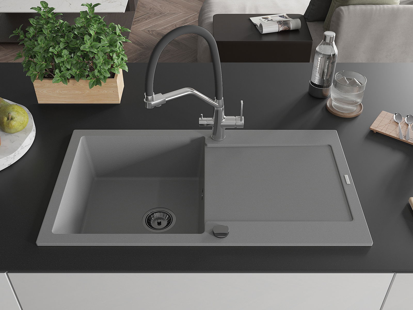 Kriauklės paviršius yra atsparūs dėmėms ir spalvos pasikeitimui, dėl kurio lengva valyti ir ilgą laiką išlaikyti savo spalvą. Estetinis ir praktiškai papildantis kiekvieną virtuvę.