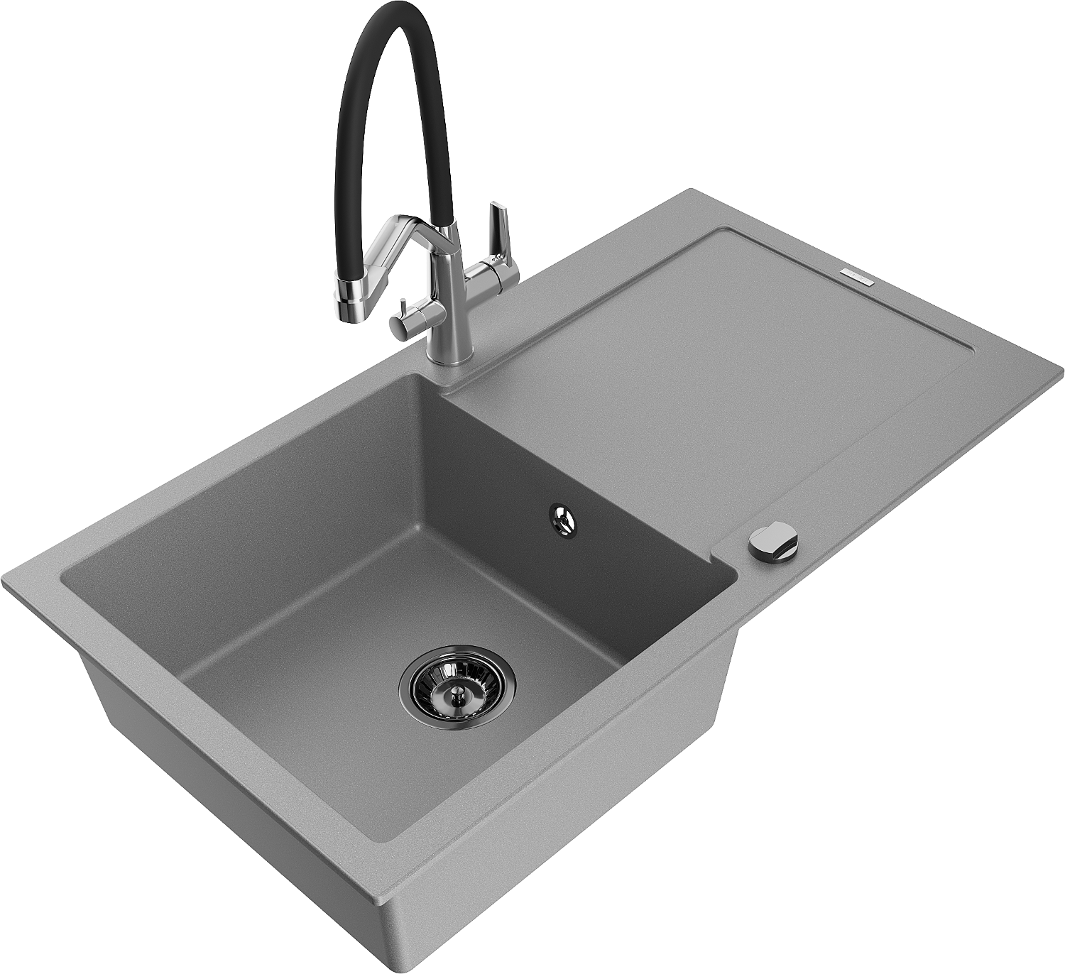 Mexen Leo vienos kameros granitinis plautuvas su nusausinimo plokšte ir Dviejų virtuvės maišytuvu, pilkas - 6501-71-671701-07-B