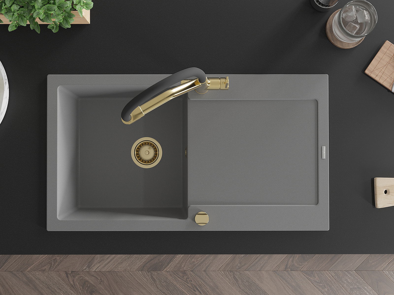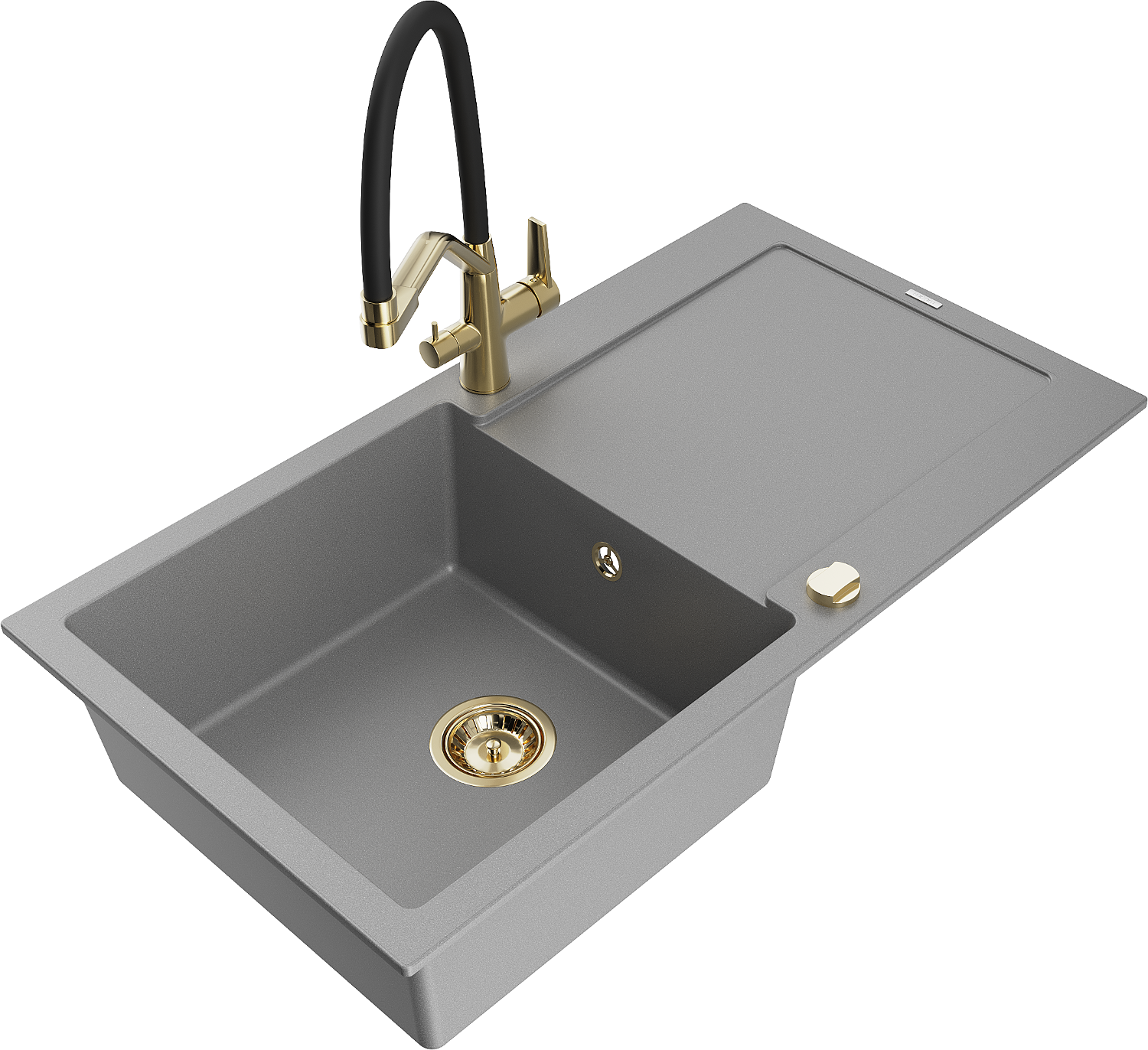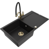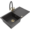 Mexen Leo granitinė vienos kameros kriauklė su nutekėjimo lenta ir Duo virtuvės maišytuvu, pilkas - 6501-71-671701-57-G