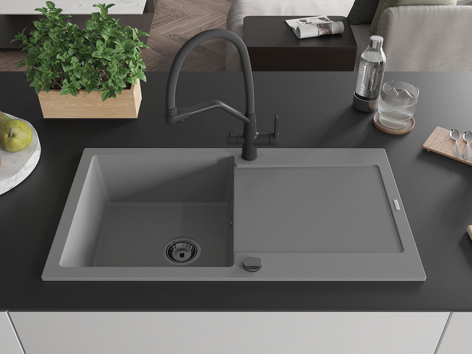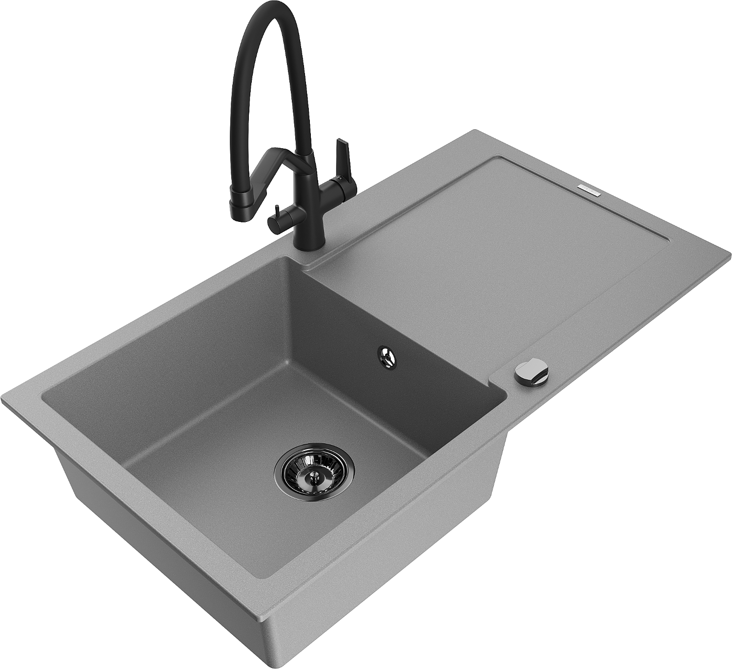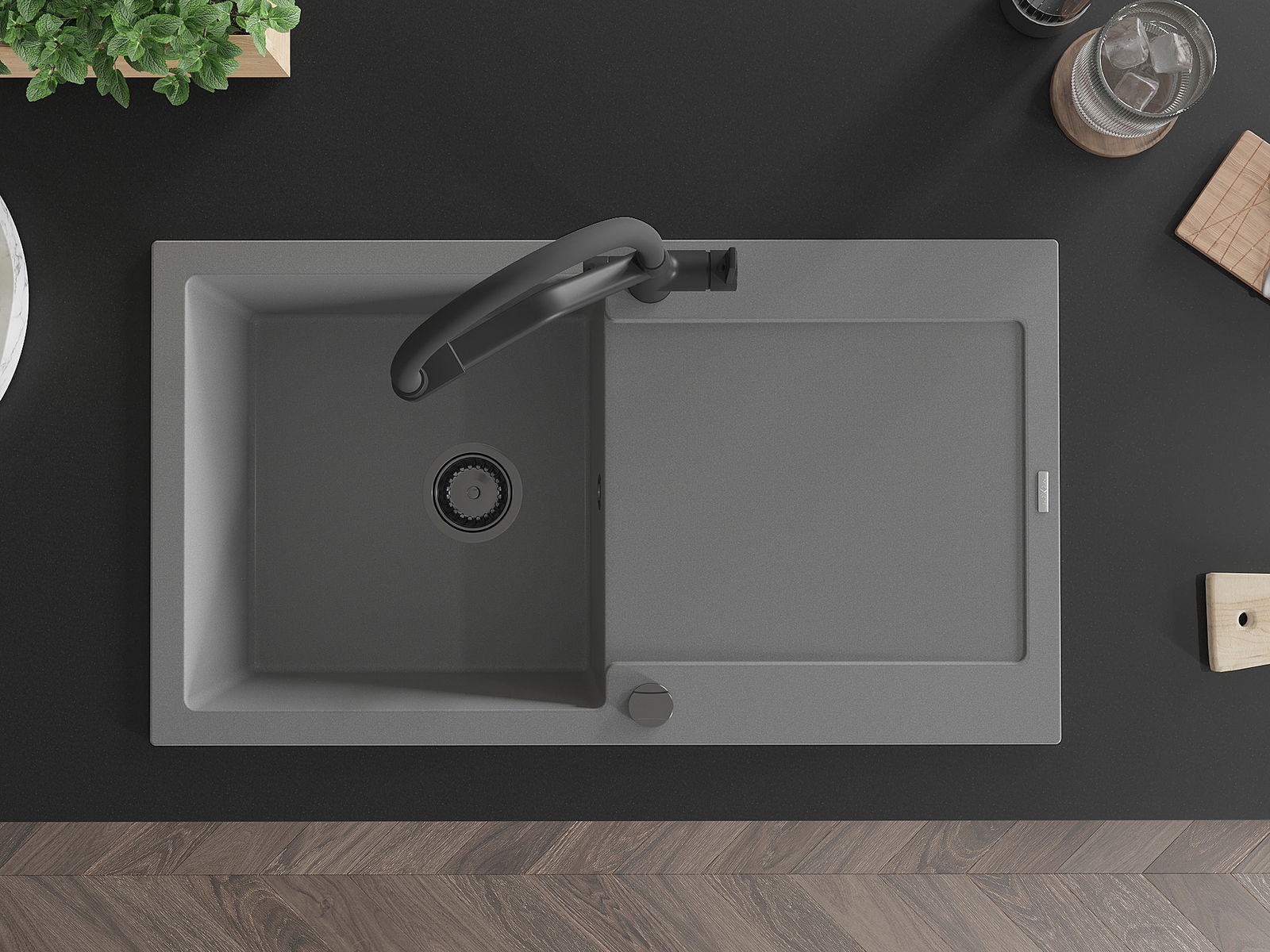 Mexen Leo granitinė virtuvės kriauklė 1 kamerinė su nutekamu ir virtuvės maišytuvu Duo, pilka - 6501-71-671701-70-B