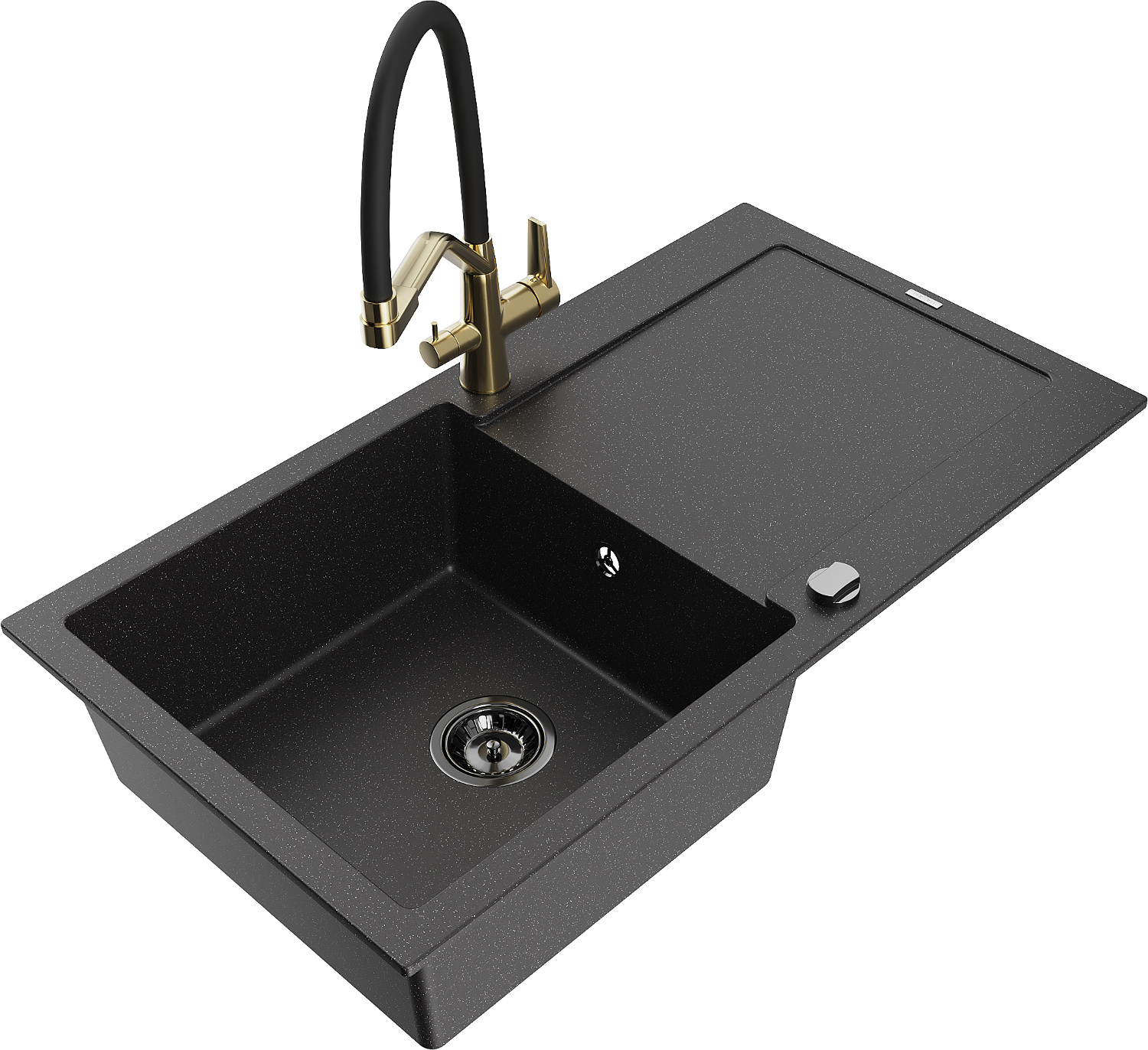 Mexen Leo Granitinis Vienos Dalies Kriauklė su Nutekėjimu ir Dvigubas Virtuvinis Maišytuvas, Juodas/Sidabrinis Metalikas - 6501?