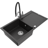 Mexen Leo vienos kameros granitinė plautuvė su nusausinimu ir virtuviniu maišytuvu Duo, juoda dėmėta - 6501-76-671701-07