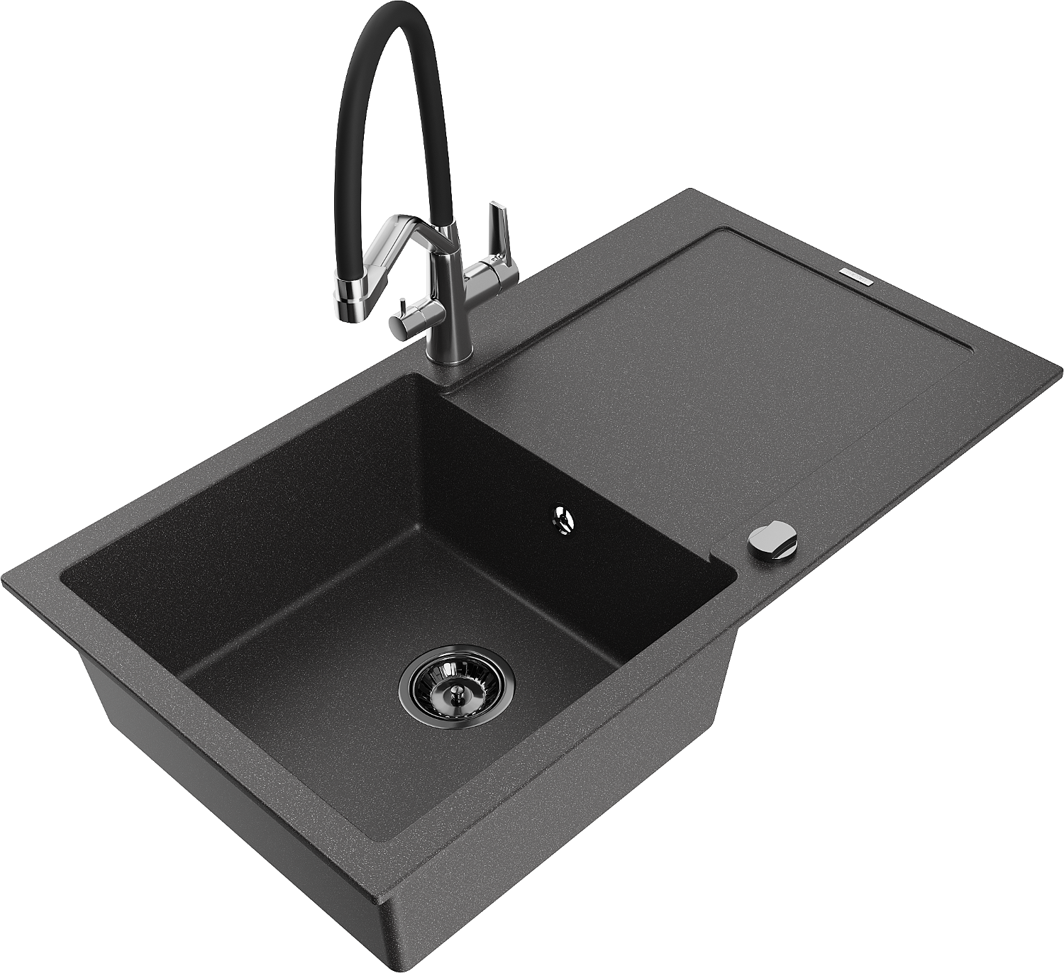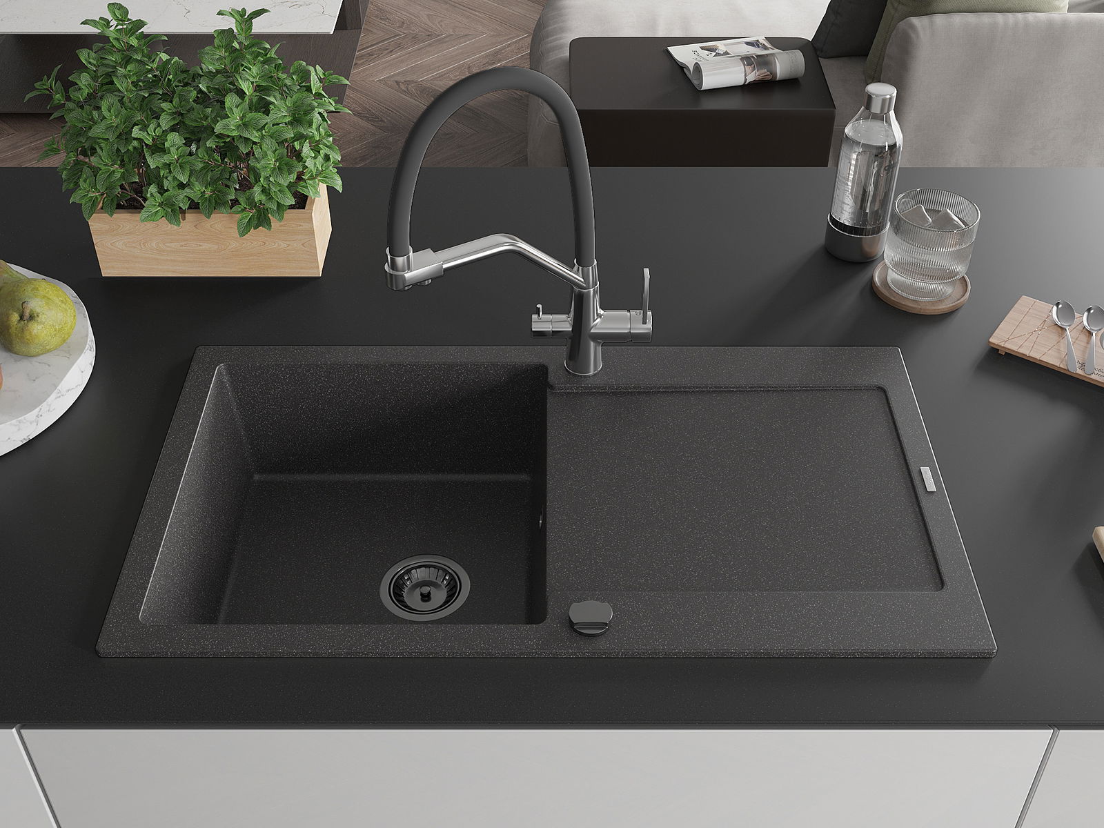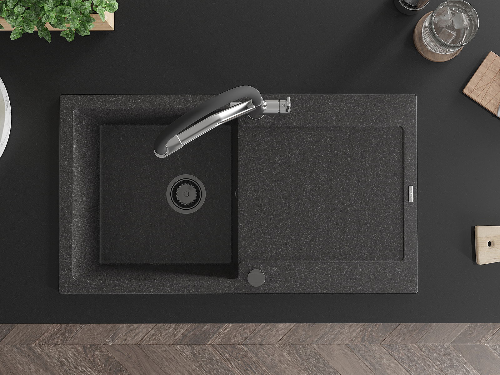 Mexen Leo granito plautuvė vienos kameros su nutekėjimu ir virtuvės maišytuvu Duo, juodas taškuotas - 6501-76-671701-07-B