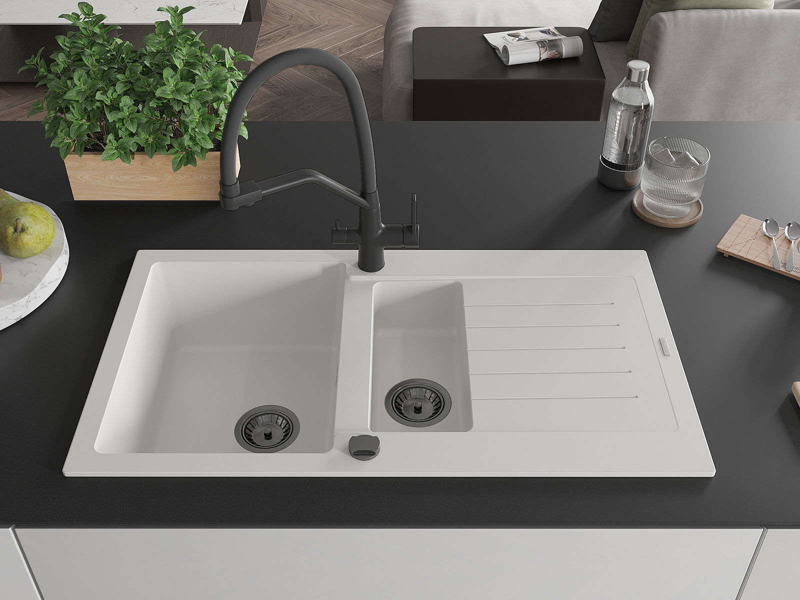 Kriauklės paviršius yra atsparūs dėmėms ir spalvos pasikeitimui, dėl kurio lengva valyti ir ilgą laiką išlaikyti savo spalvą. Estetinis ir praktiškai papildantis kiekvieną virtuvę.