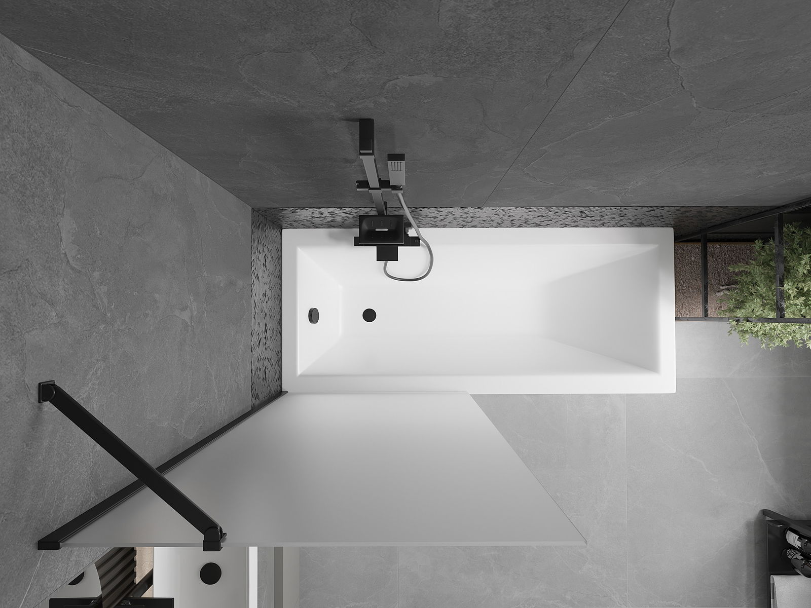 Veiksminga apsauga nuo vandens išsiliejimo maudymosi metu. Ekrane yra antspaudai, kurie puikiai prisitaiko prie stiklo stiklo ir vonios krašto. Funkcinis sprendimas, užtikrinantis saugumą ir lengvą priežiūrą.