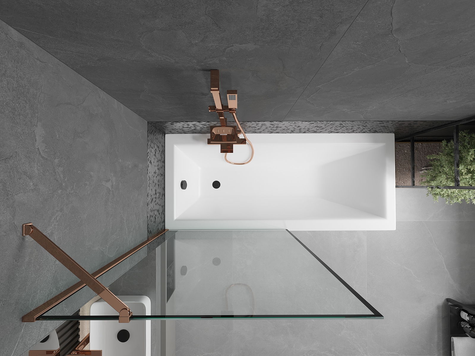 Mexen Next 1-durų vonios ekranas, 90 x 150 cm, juodas rėmas, rožinis auksas - 895-090-000-00-70-60
