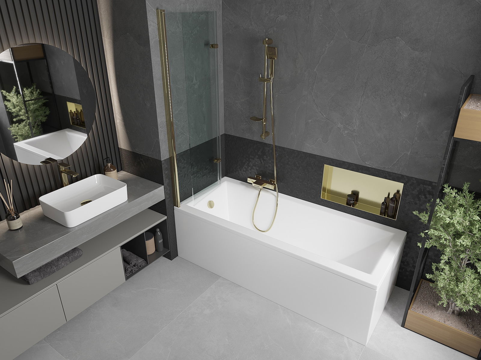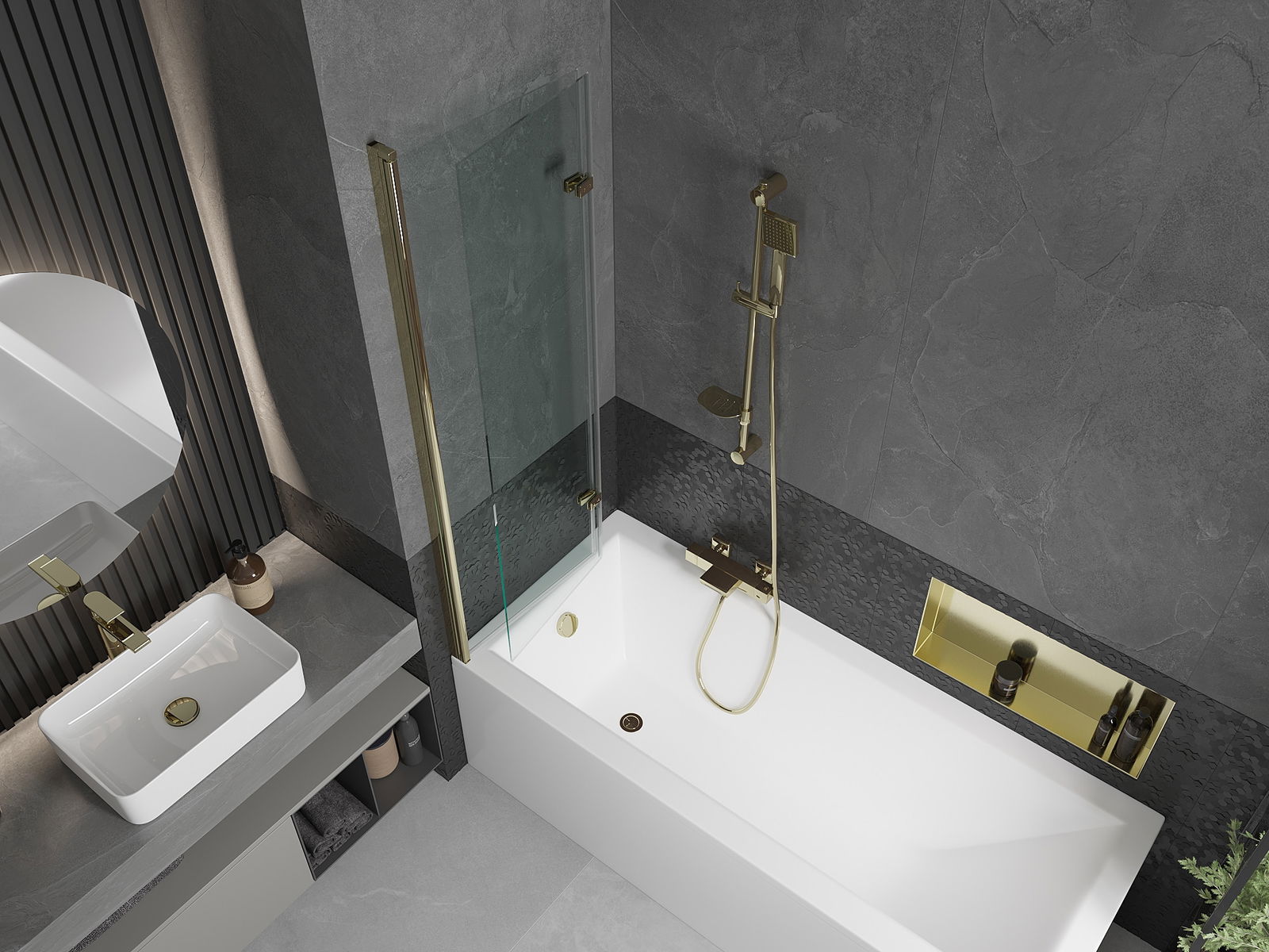 Veiksminga apsauga nuo vandens išsiliejimo maudymosi metu. Ekrane yra antspaudai, kurie puikiai prisitaiko prie stiklo stiklo ir vonios krašto. Funkcinis sprendimas, užtikrinantis saugumą ir lengvą priežiūrą.