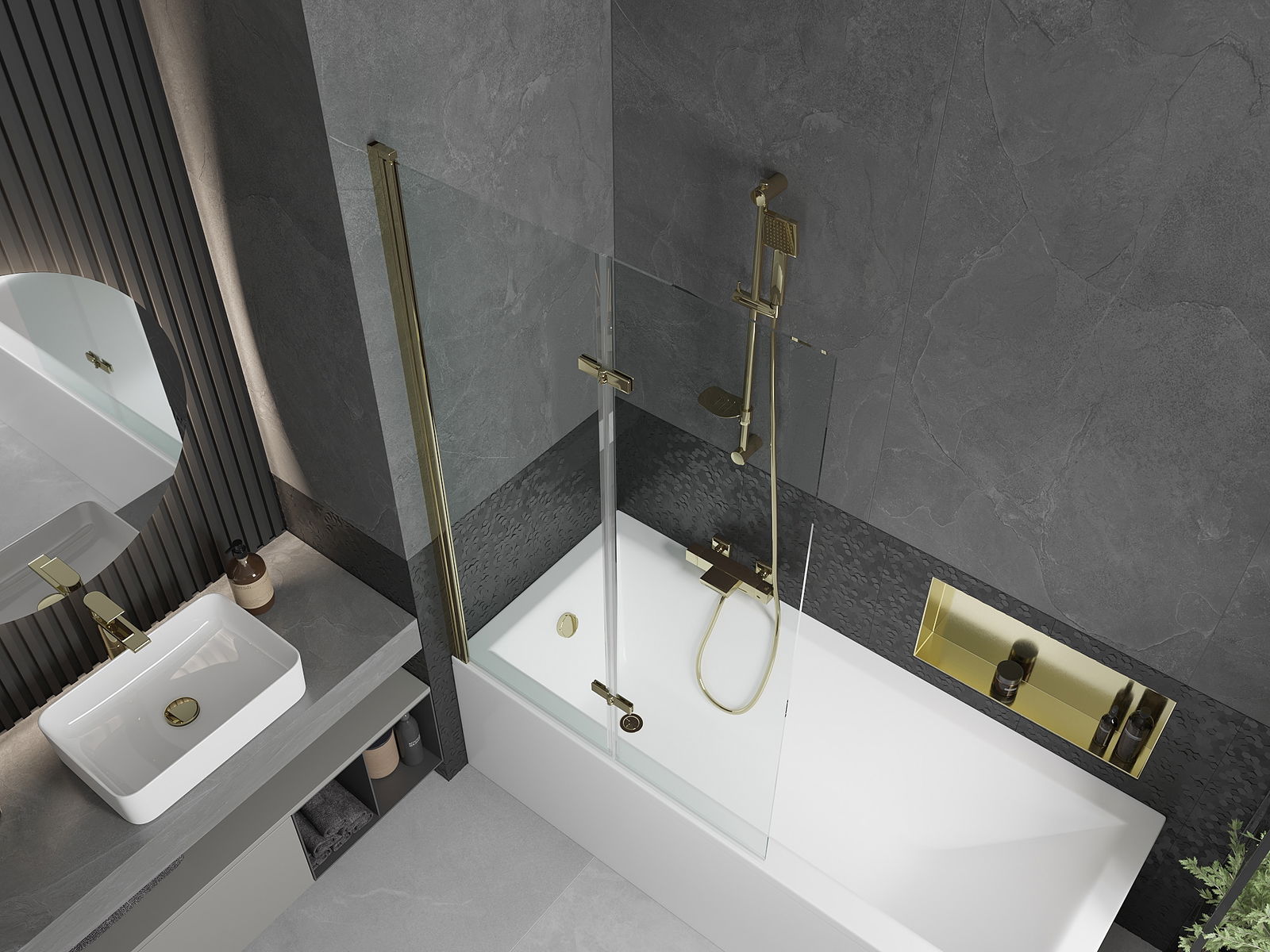 Ekranas pagamintas iš dviejų sparnų, turinčių sulankstymo galimybę. Šis sprendimas taupo daugiau vietos vonios kambaryje ir leidžia laisvai naudoti likusią erdvę, kai nenaudojame maudymosi vietos.