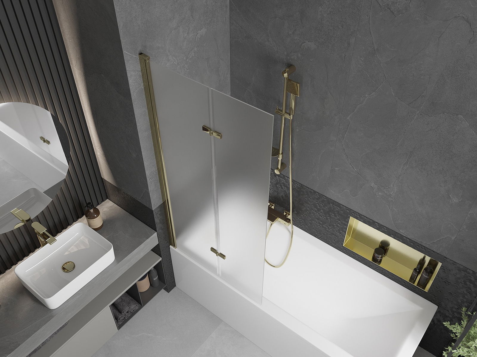 Mexen Castor dvisparnis vonios ekranas 80 x 150 cm, matinė, auksinė - 892-080-002-50-30