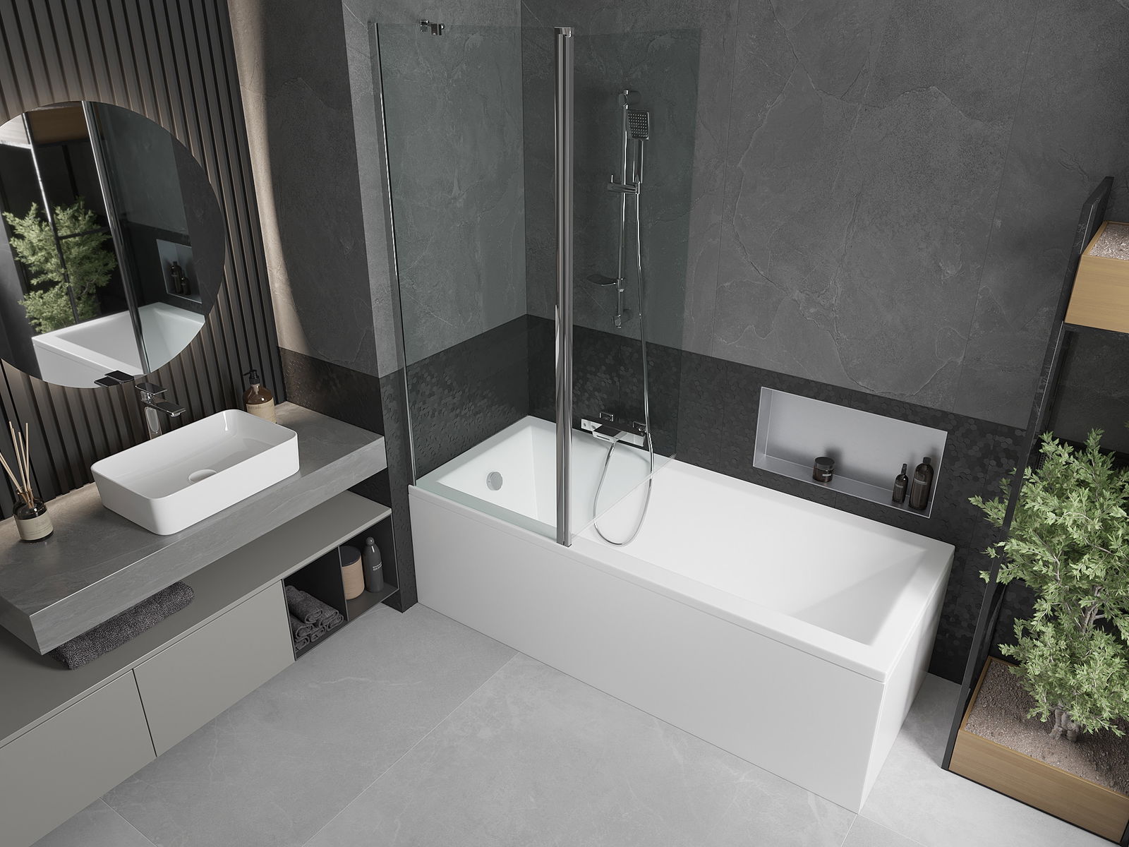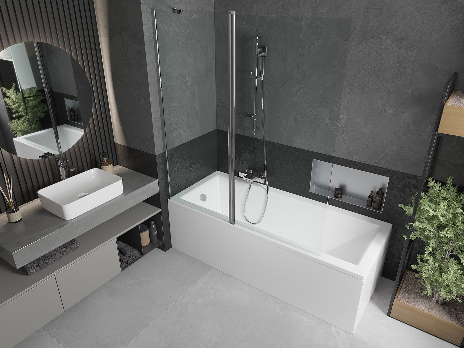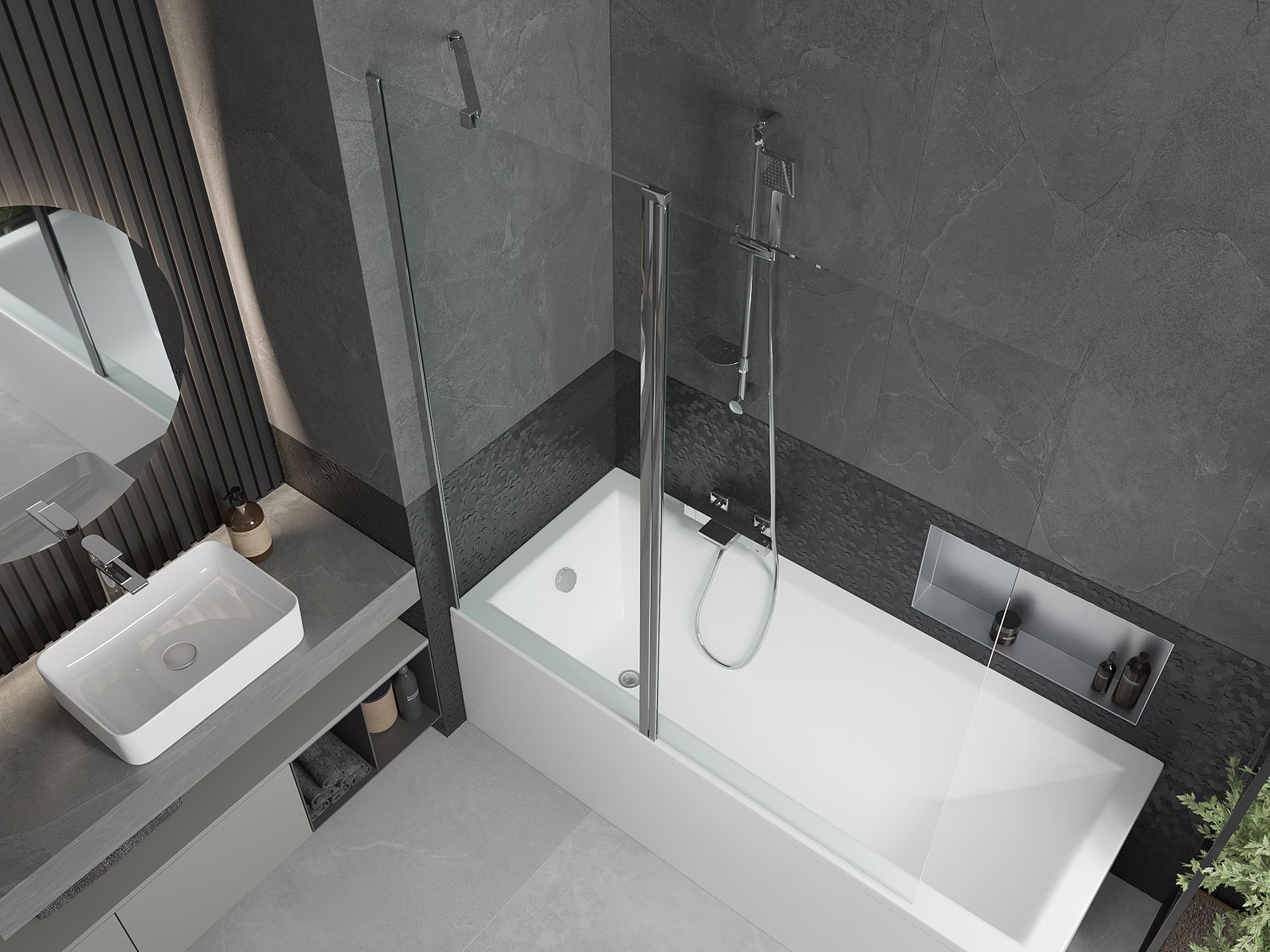 Ekrane yra vienas judantis sparnas su galimybe sulankstyti. Šis sprendimas taupo daugiau vietos vonios kambaryje ir leidžia laisvai naudoti likusią erdvę, kai nenaudojame maudymosi vietos.