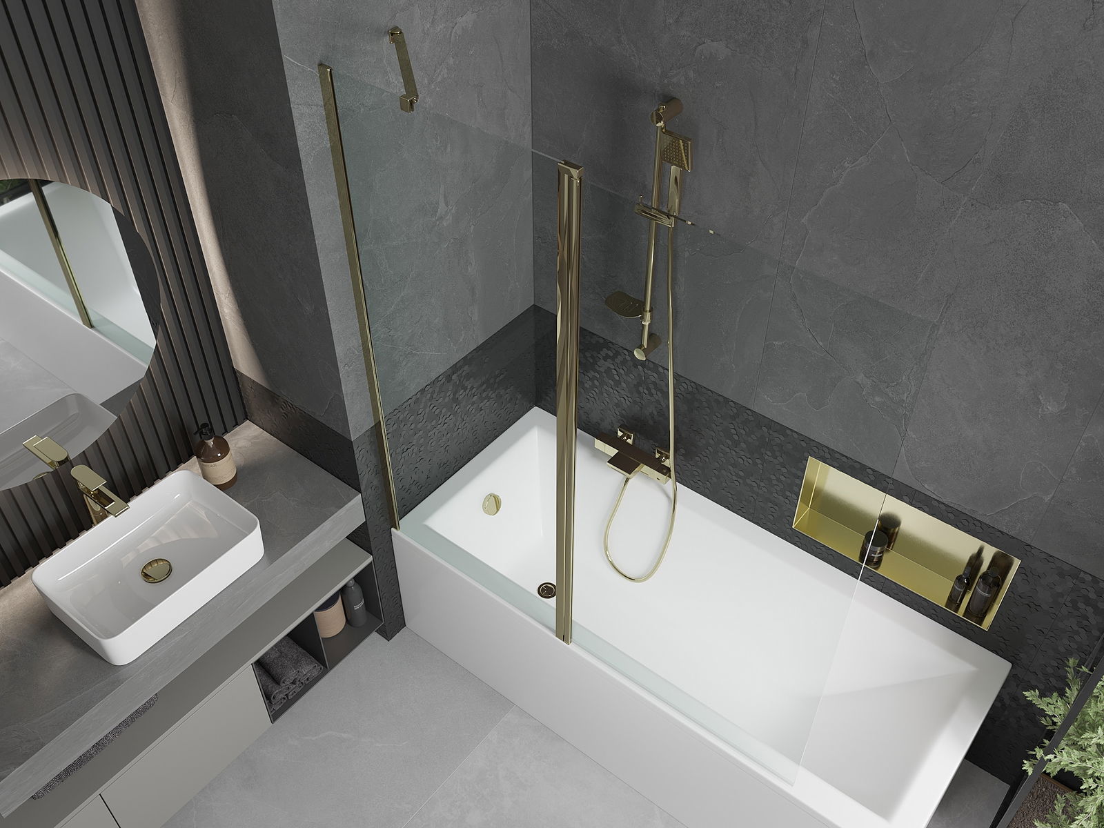 Mexen Flip vonios ekranas, dviejų dalių, 140 x 150 cm, permatomas, auksinis - 894-140-101-50-00