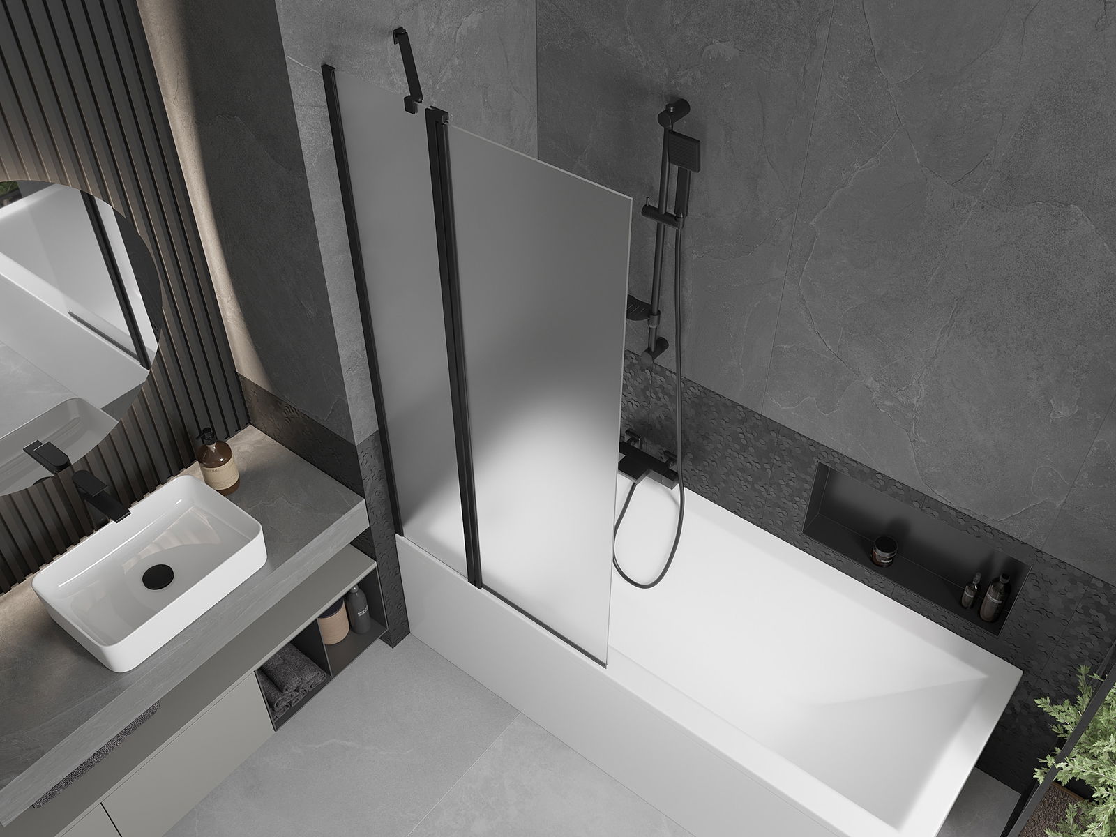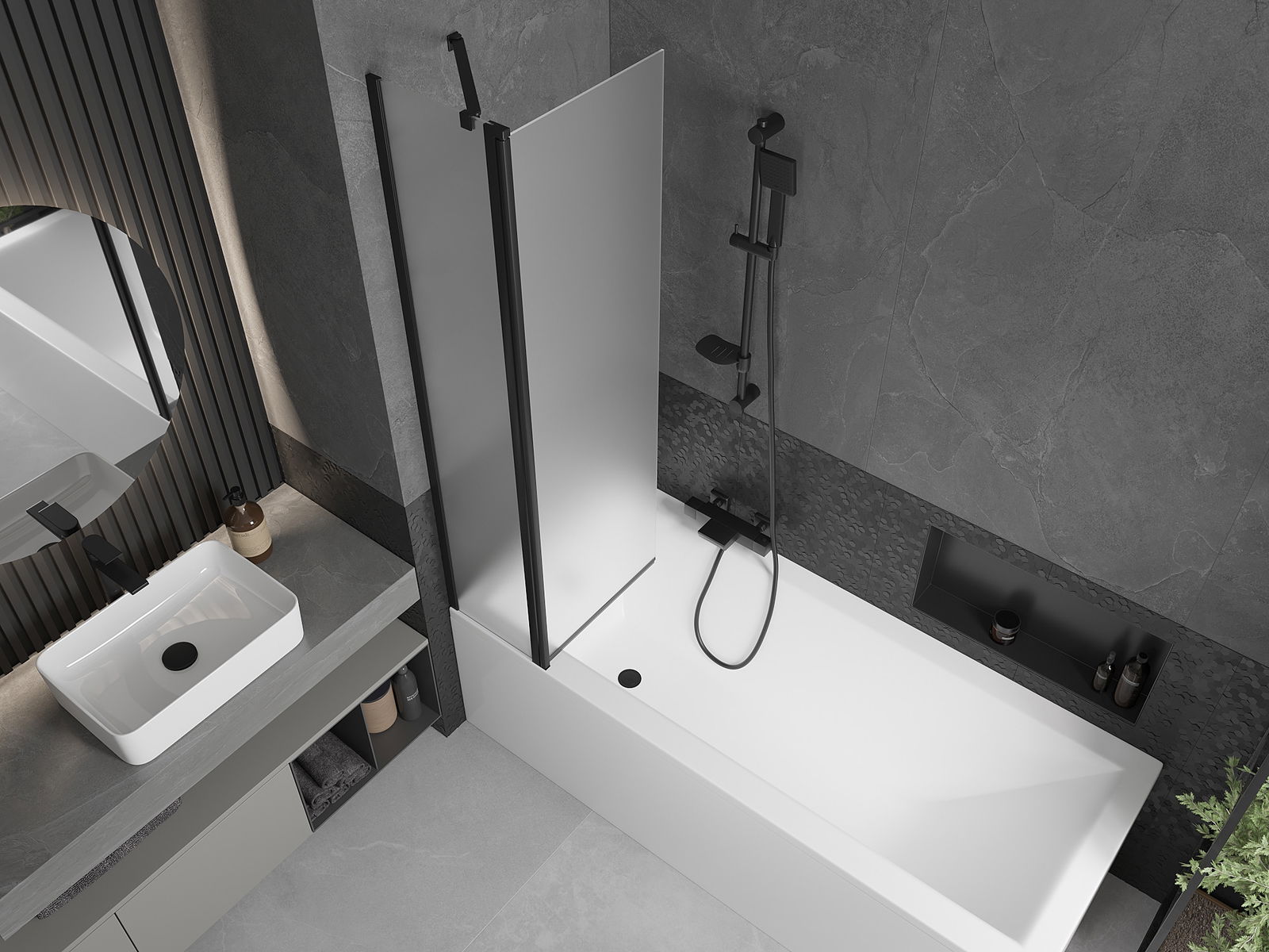 Ekrane yra vienas judantis sparnas su galimybe sulankstyti. Šis sprendimas taupo daugiau vietos vonios kambaryje ir leidžia laisvai naudoti likusią erdvę, kai nenaudojame maudymosi vietos.