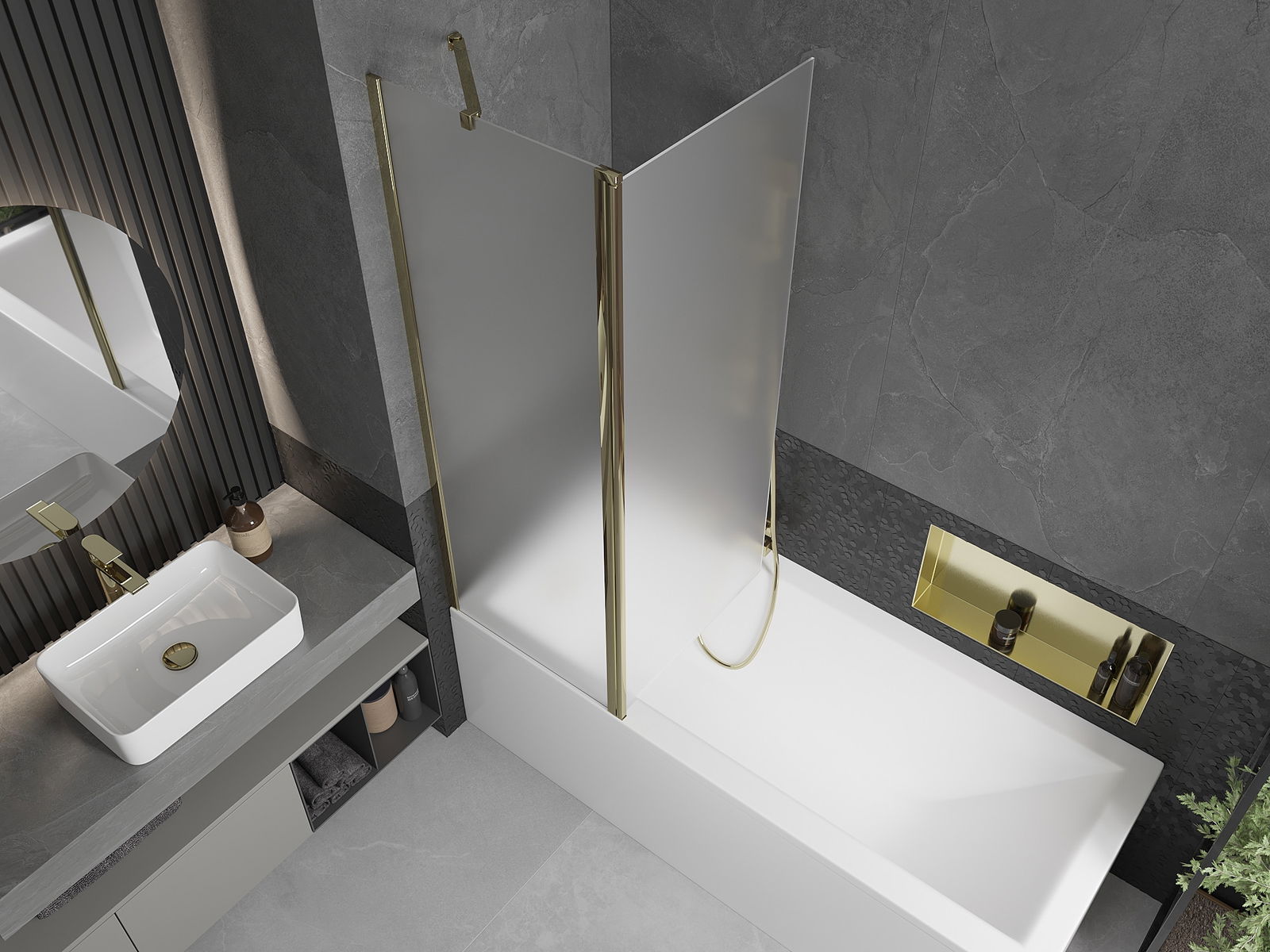 Ekrane yra vienas judantis sparnas su galimybe sulankstyti. Šis sprendimas taupo daugiau vietos vonios kambaryje ir leidžia laisvai naudoti likusią erdvę, kai nenaudojame maudymosi vietos.