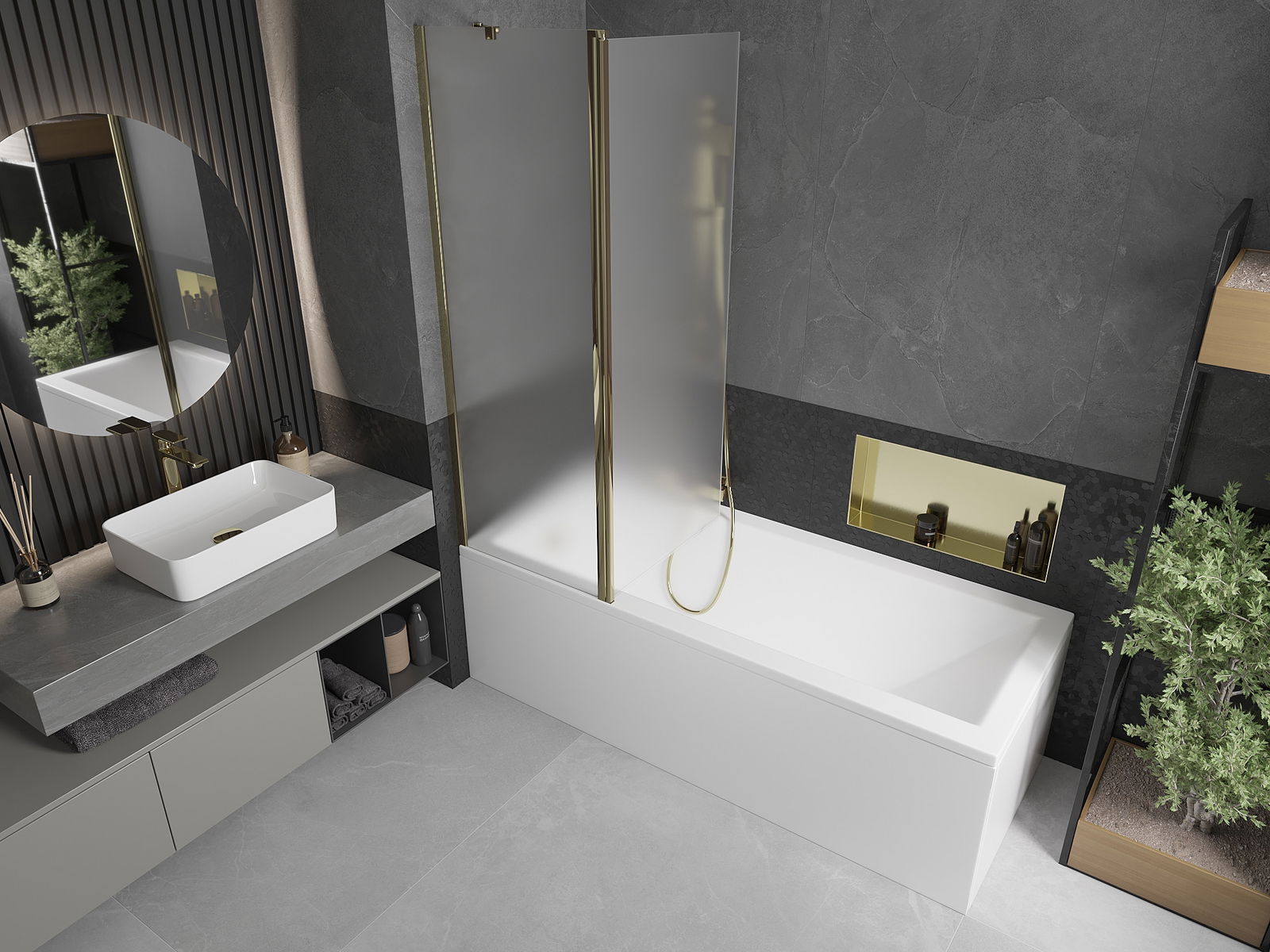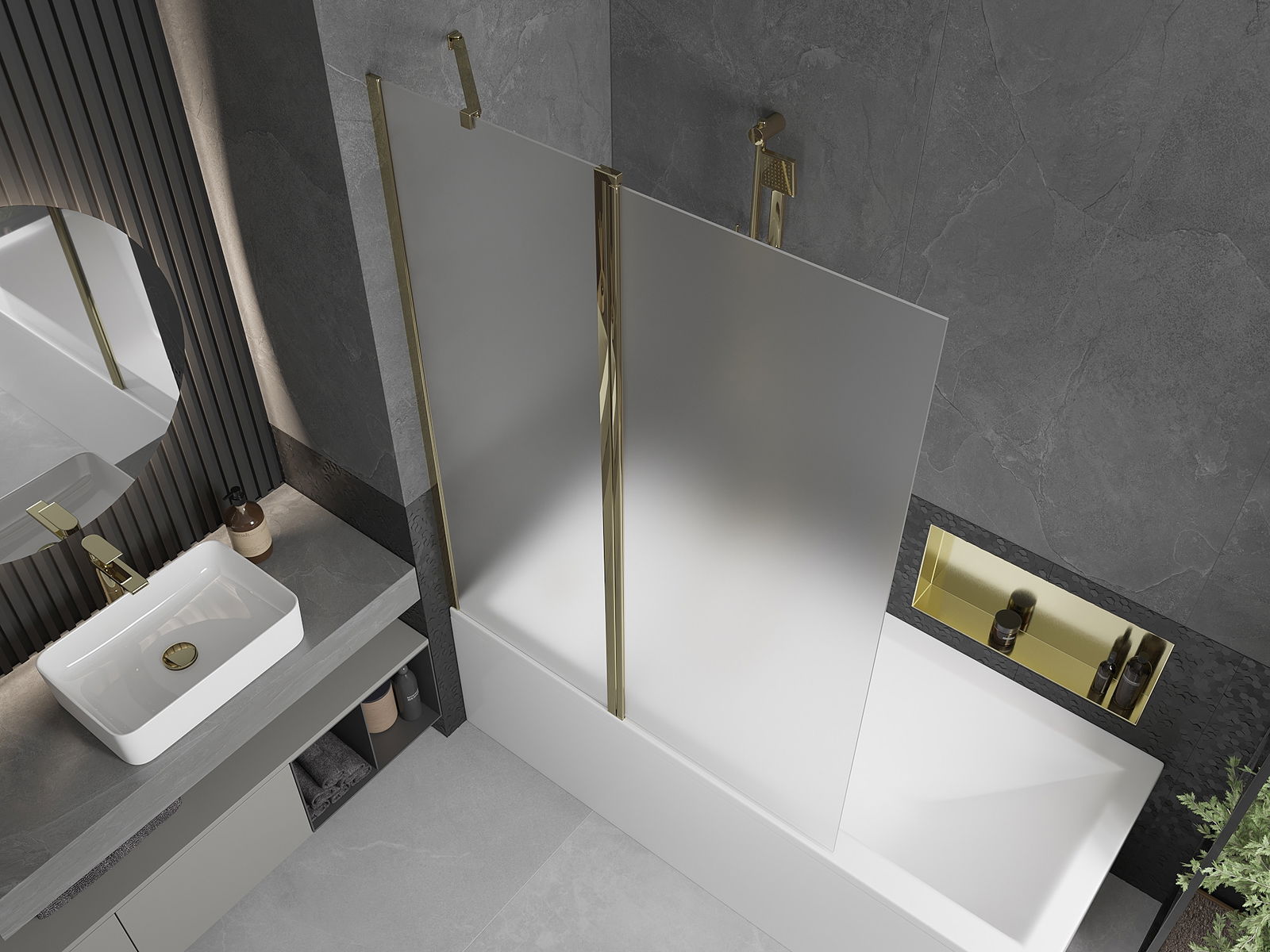 Mexen Flip dviejų dalių vonios užuolaida 120 x 150 cm, matinė, auksinė - 894-120-101-50-30