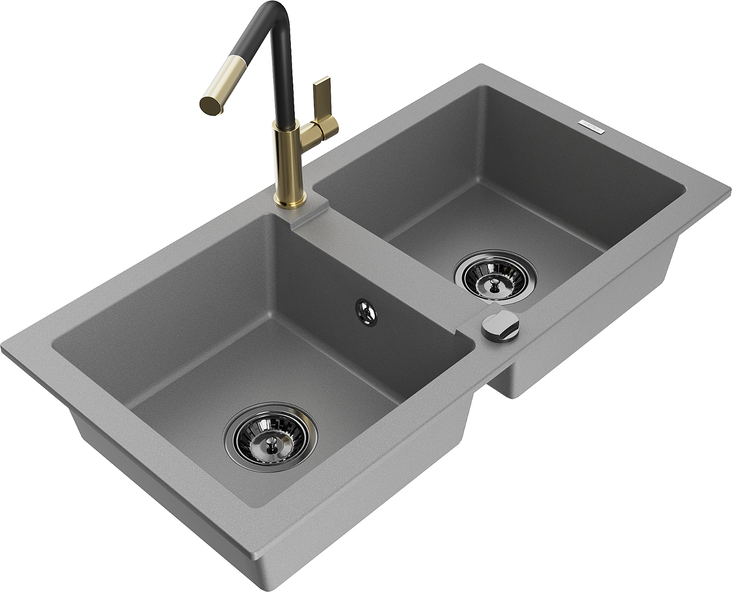 Mexen Mario granitinis dviejų skylių plautuvė su Flora virtuviniu maišytuvu, pilkas - 6504-71-670401-57-B