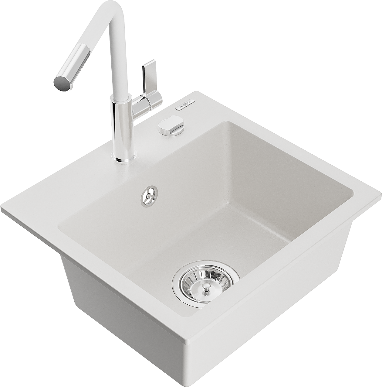 Mexen Milo granitinė virtuvės kriauklė su vienu dubeniu ir Flora maišytuvu, balta - 6505-20-670401-02