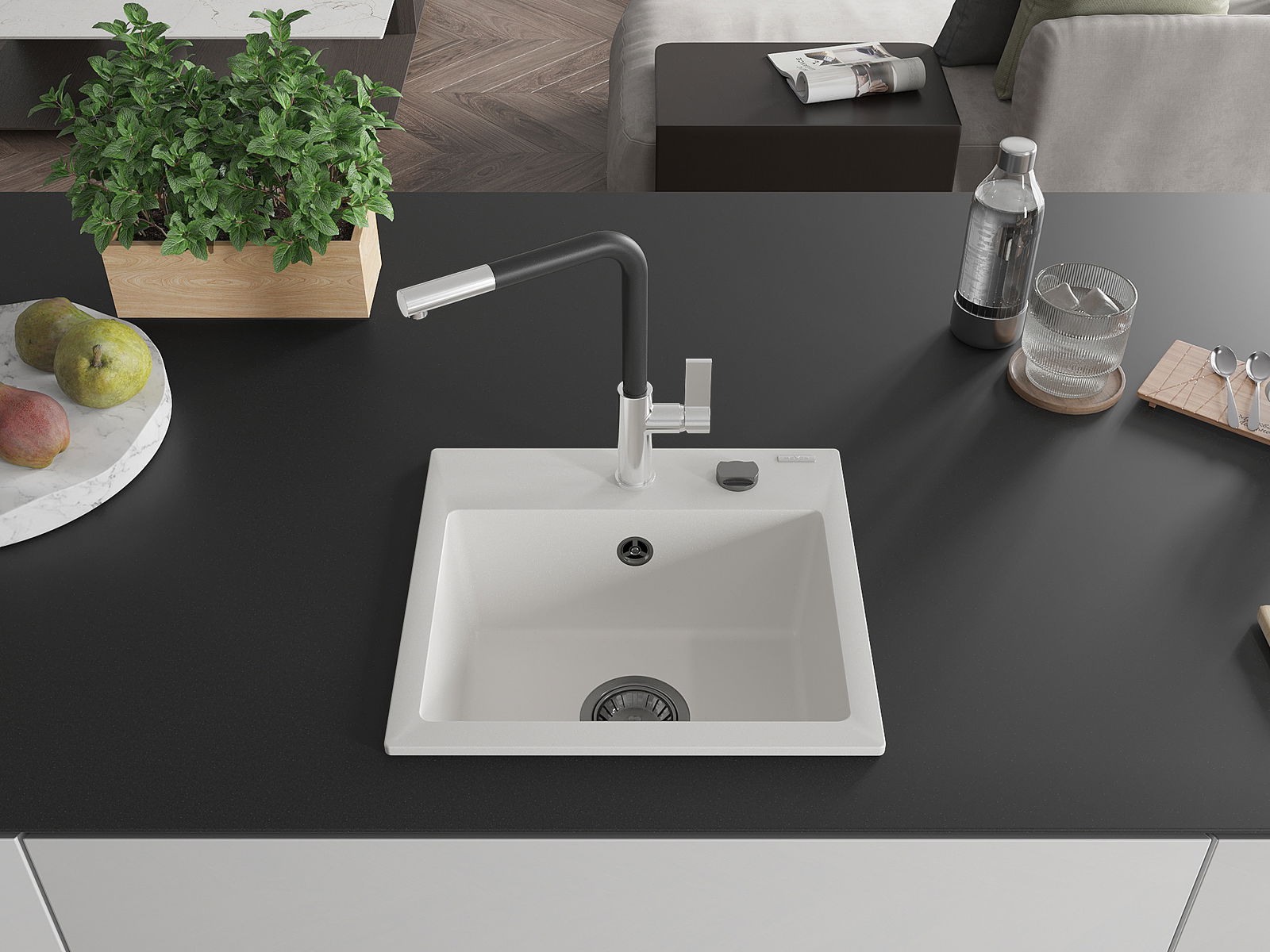 Kriauklės paviršius yra atsparūs dėmėms ir spalvos pasikeitimui, dėl kurio lengva valyti ir ilgą laiką išlaikyti savo spalvą. Estetinis ir praktiškai papildantis kiekvieną virtuvę.
