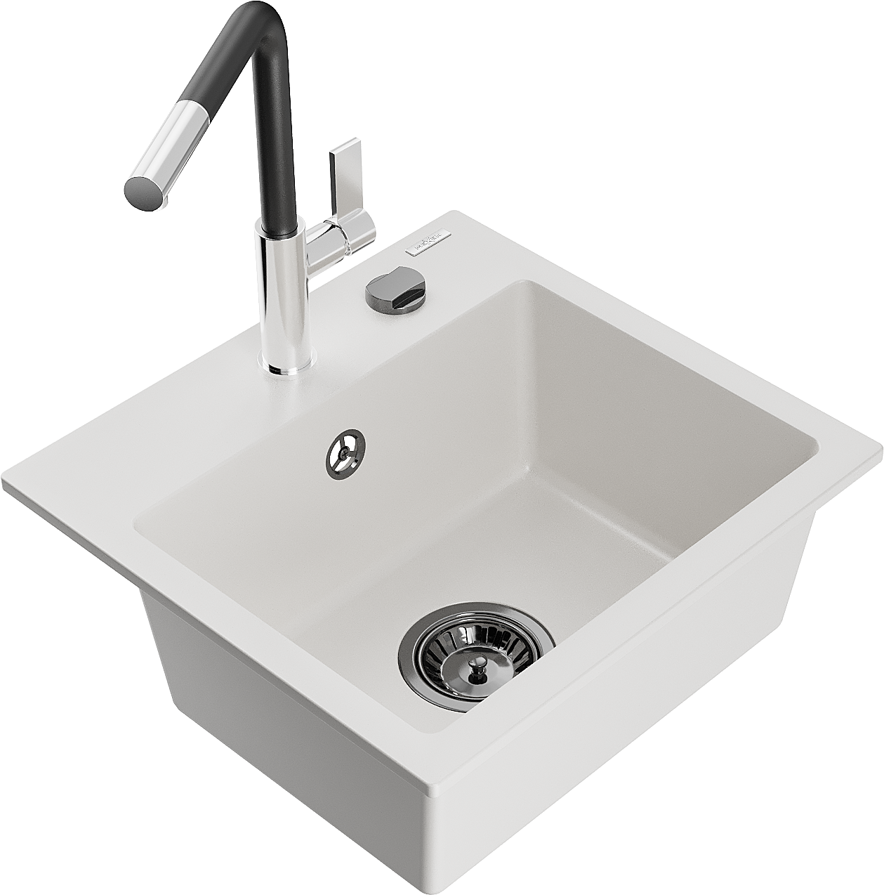 Mexen Milo vienosios kameros granito plautuvė su virtuviniu maišytuvu Flora, balta - 6505-20-670401-07-B