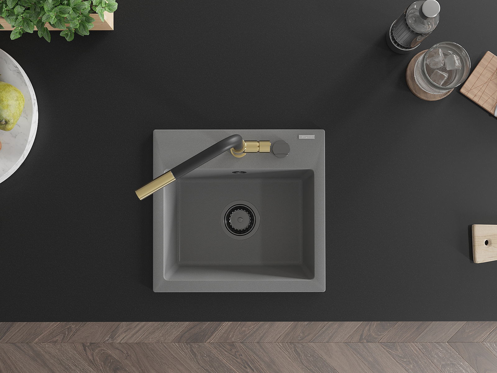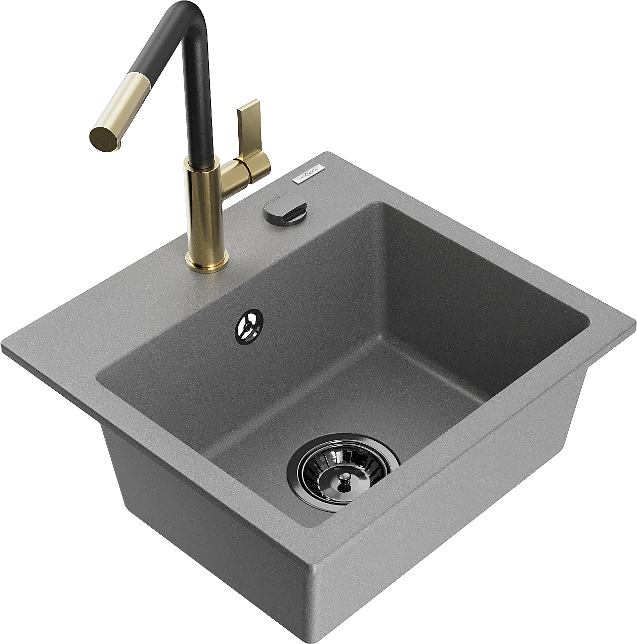 Mexen Milo vienos kameros granitinis plautuvas su virtuviniu maišytuvu Flora, pilkas - 6505-71-670401-57-B