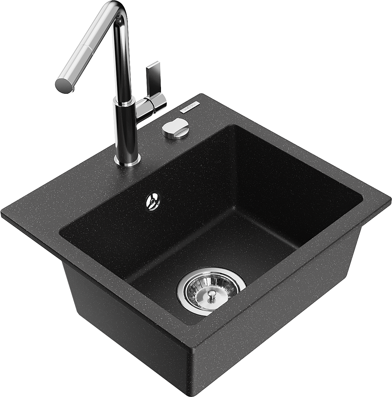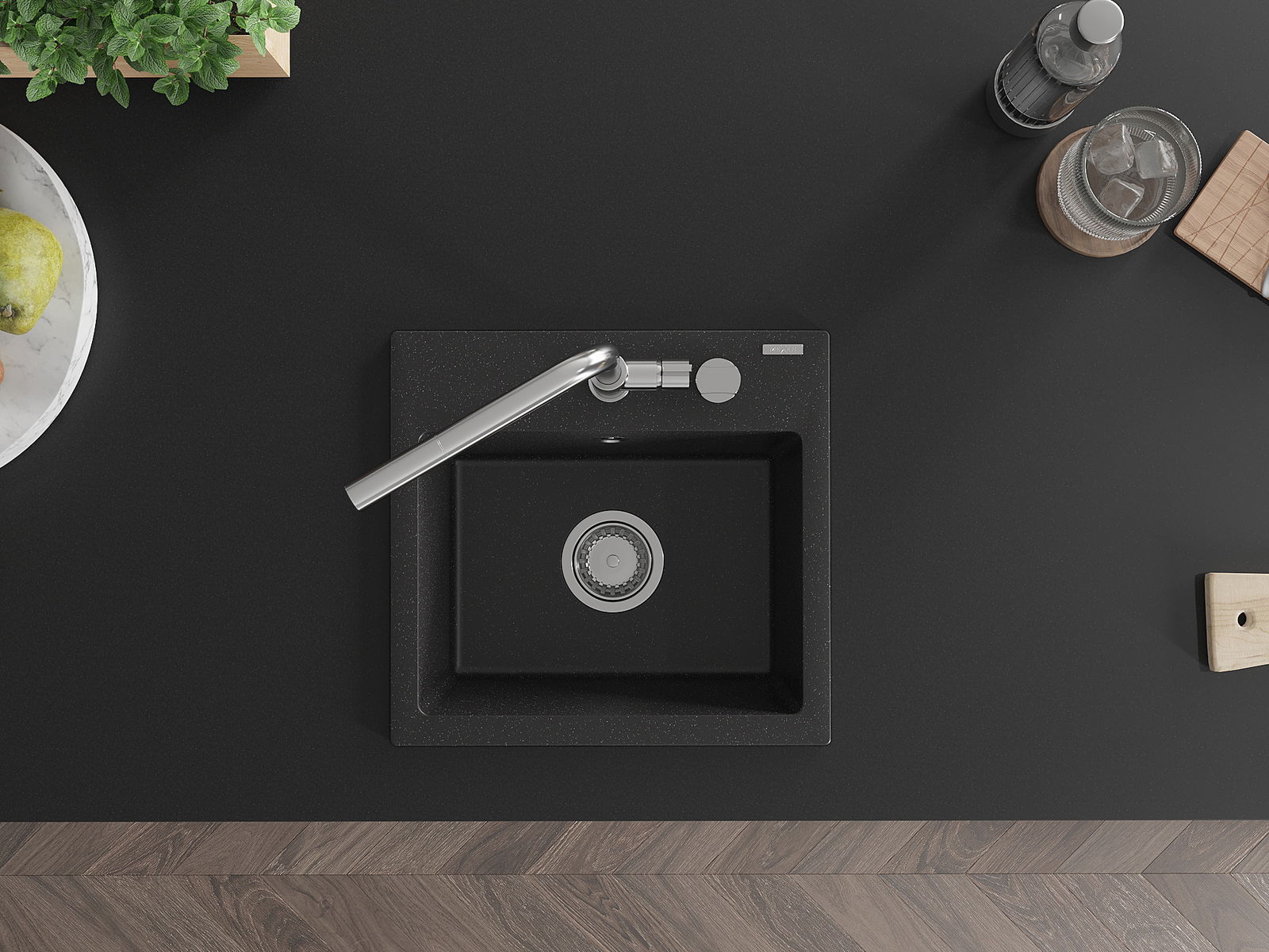 Mexen Milo granito kriauklė 1 skyrius su virtuviniu maišytuvu Flora, juoda/sidabrinė metalik - 6505-73-670401-00