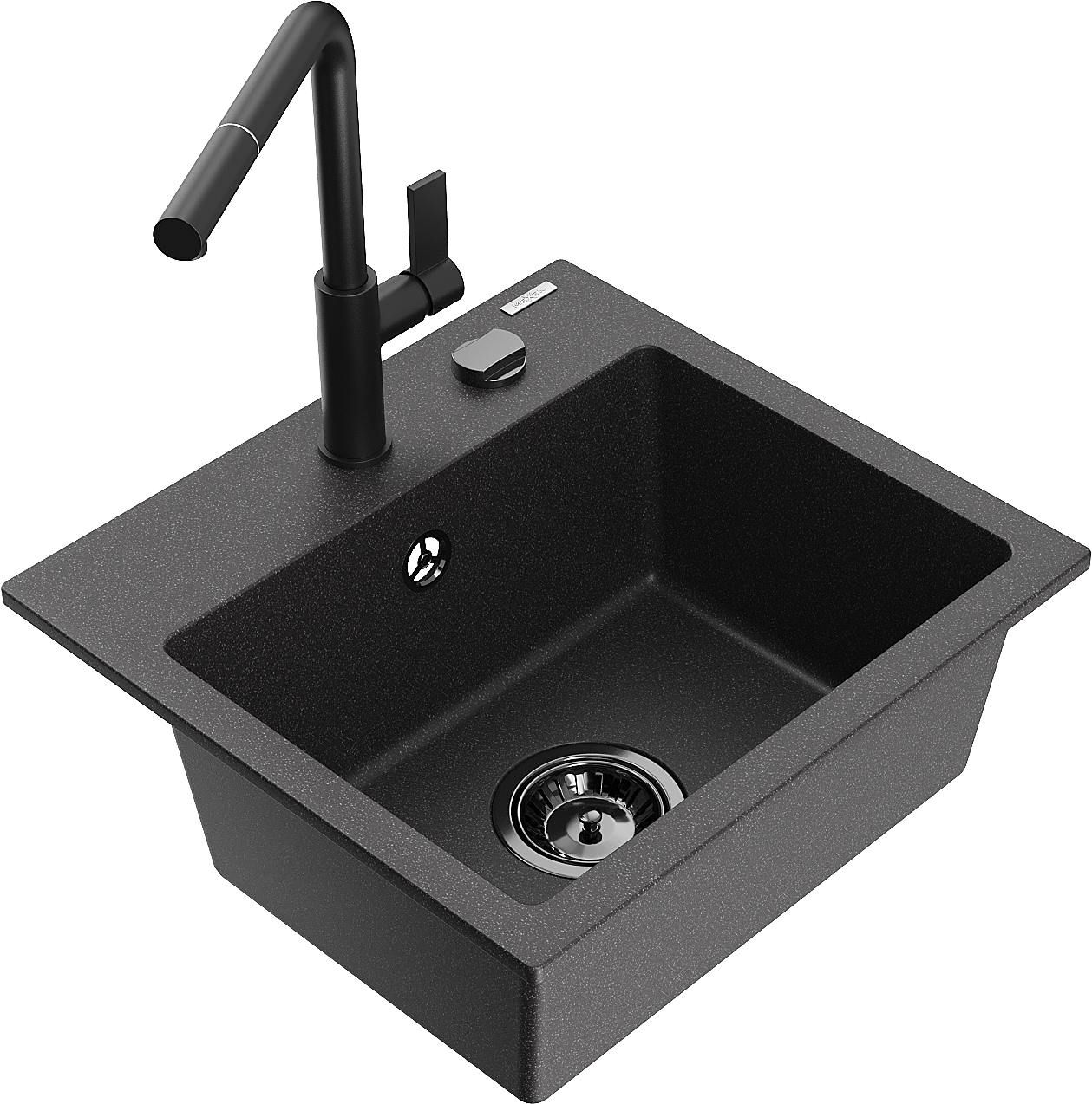 Mexen Milo vienos kameros granitinė plautuvė su Flora virtuviniu maišytuvu, juoda dėmėta - 6505-76-670401-70-B